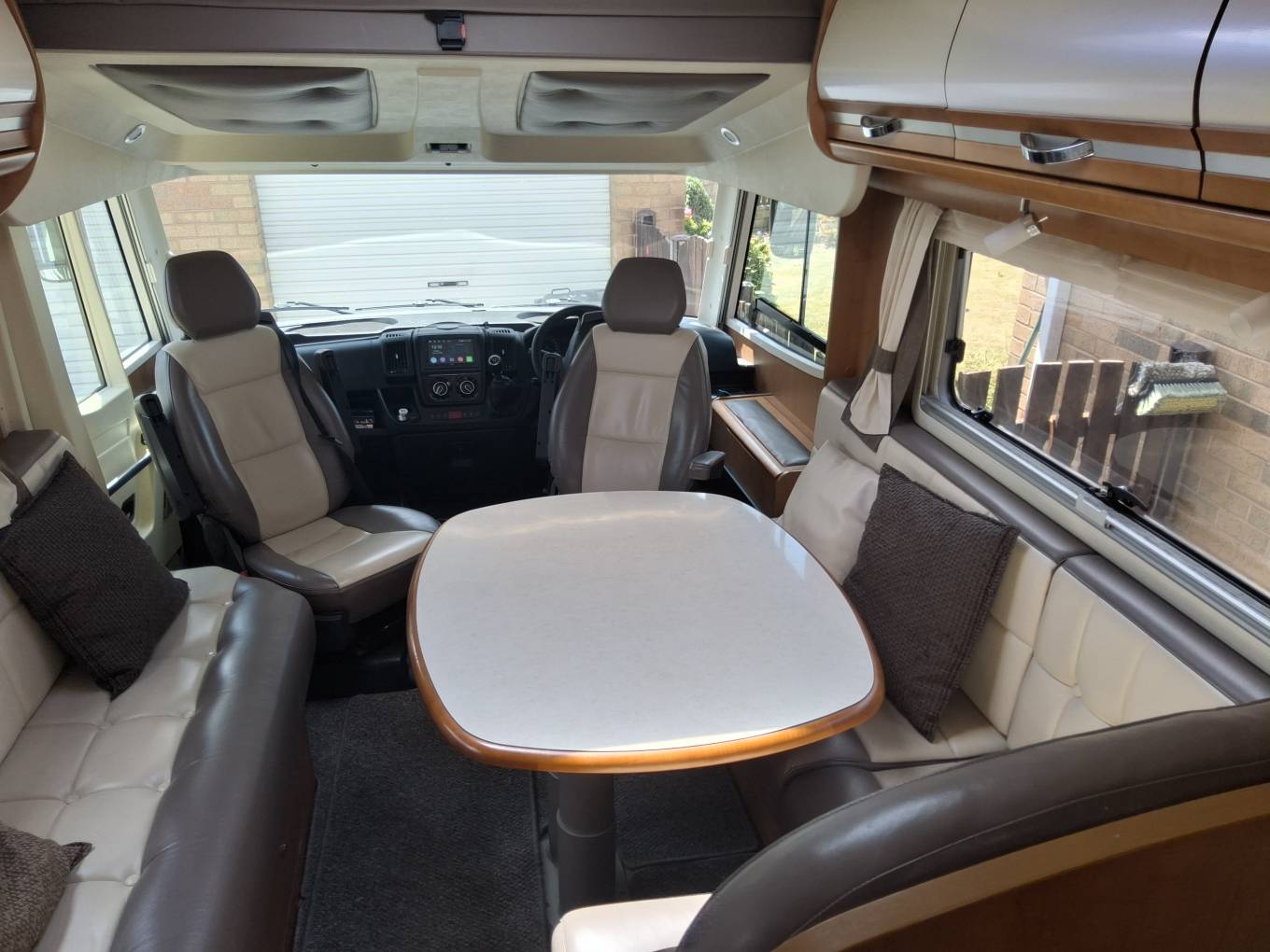 Here we have an excellent example of a 2012 Rapido 9048DF based on a 2.3 Fiat Diesel with 6 speed manual gearbox. This 4 berth motorhome comes in great condition and has many extras such as, a solar panel, cab air-con, bike rack, reverse camera,Galloway refillable bottles, and cruise control. To the rear you have your washroom that includes a sink with taps, toilet cassette and a separate shower cubicle. Just out of here is your kitchen area which is nicely spread out and features a sink with taps, oven, hob, grill, extractor fan and full sized fridge freezer. Moving forwards, in the dinette area you have a long bench seat and a L shape sofa with an additional 2 seat-belts therefore allowing 4 people to travel in total. Finally, you have 2 swivel seats in the front to allow for more people to be catered for in the dinette area and also a pull down bed above the cab area. This motorhome has excellent storage throughout with overhead lockers, wardrobe space and also a double floor which also means you can full winterise this motorhome. It comes with a full motorhome cover, sides for the awning and a spare tyre, external blinds, infill cushions to make up bed, 25mt mains cable, spare table top plus other camping gear. Part exchange and finance are available. This motorhome can be viewed in Dewsbury, by appointment only.