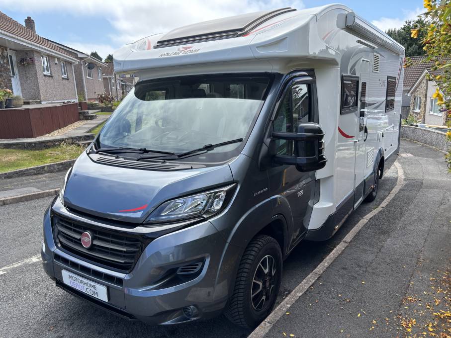 Motorhome Depot Plymouth is pleased to present this spacious and modern 2019 Roller Team T-Line 785, a versatile 5 berth, 5 seatbelt motorhome with a sought-after layout and a fantastic range of features. Built on the Fiat Ducato chassis and powered by a 2.3L diesel engine with a 6-speed manual gearbox, this motorhome has covered just 27,575 miles and comes with a full service history.