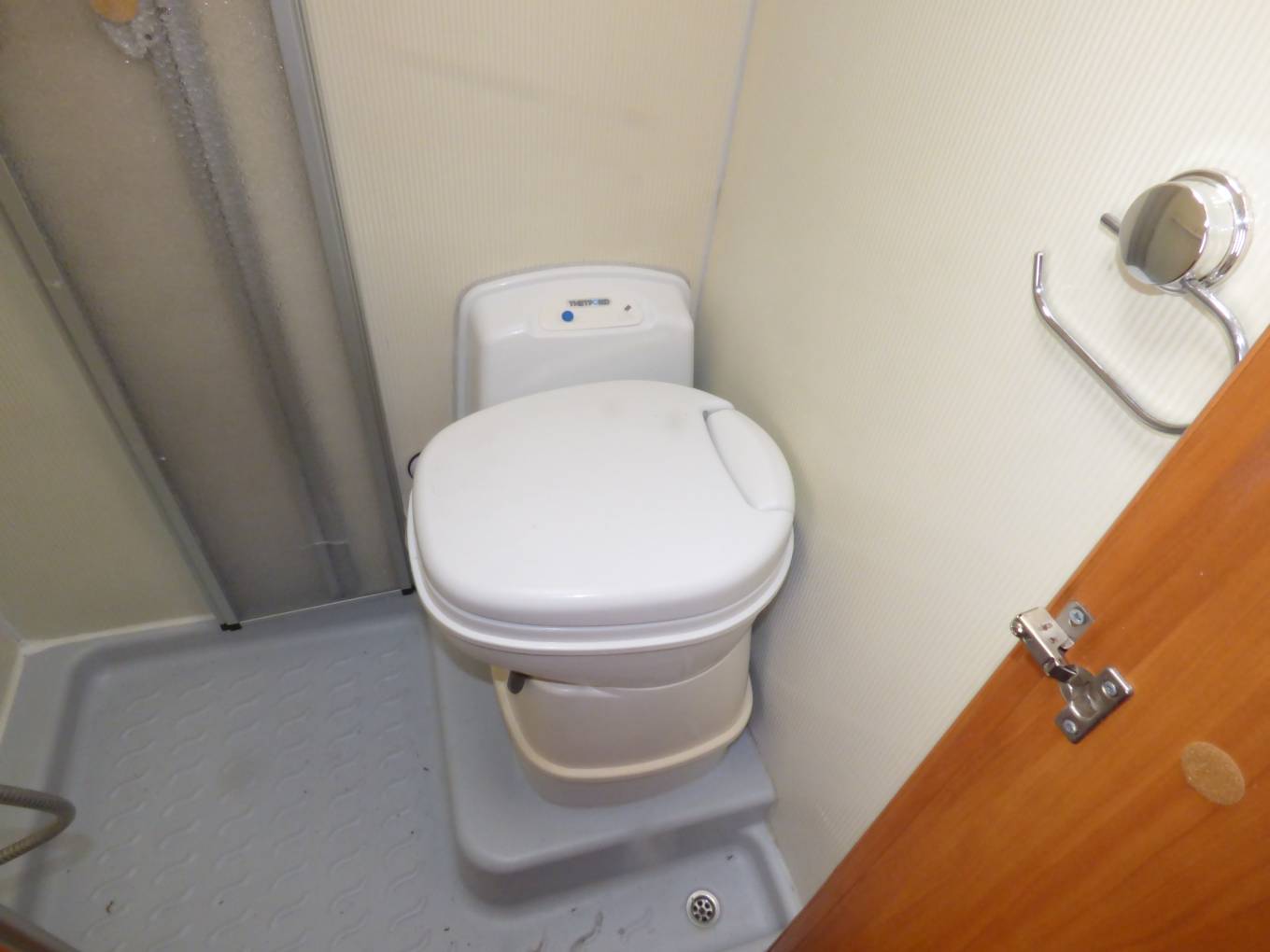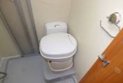High profile (large double bed above cab) and a forward dinette which converts to the second double probably suitable for one adult or 2 children . At the rear is a large washroom containing a roomy full height shower and a w.c. Between the washroom and the large wardrobe with hanging rail is a sink with mirror and vanity units surrounding it..