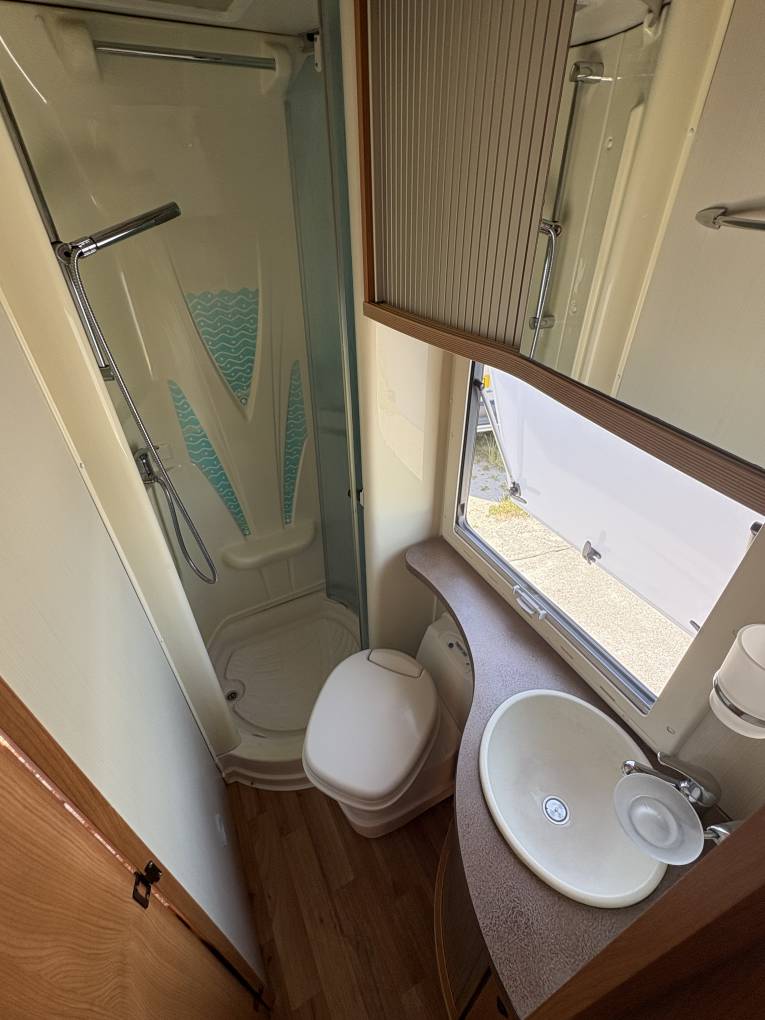 Layout - Starting at the rear, this model features the very sought after fixed double bed with storage underneath and surrounding storage lockers around the bed. To the side of the bed, we find the large washroom this is well equipped and comes with the desired separate shower cubicle, toilet cassette, vanity mirror, storage and washbasin. You have a large full length wardrobe infront of the bed.