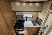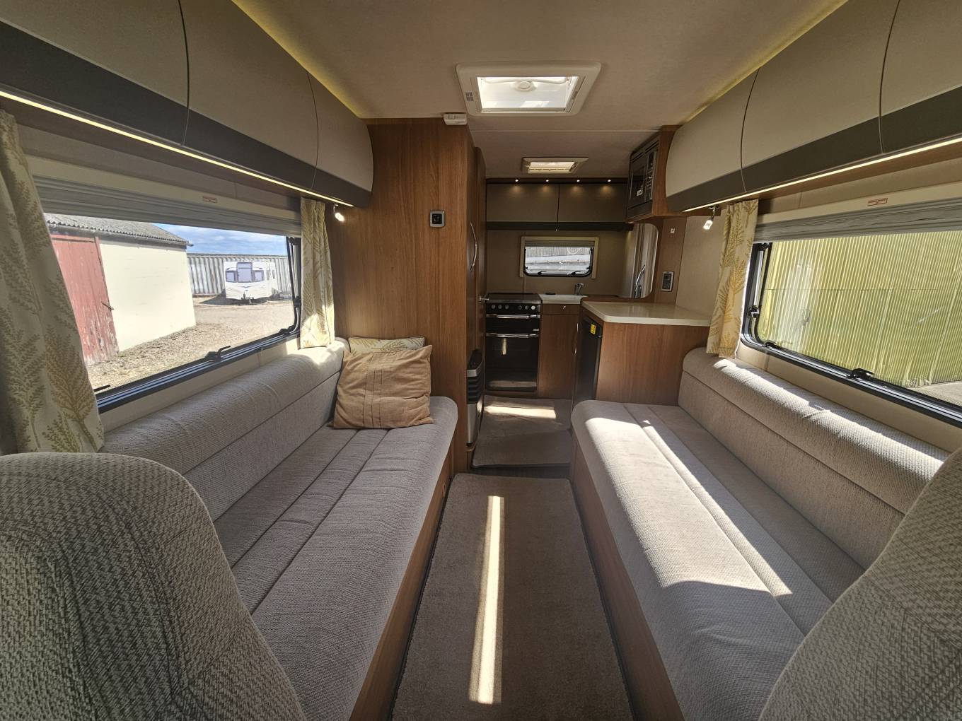 Inside is light, practical and welcoming. The lounge area has two long side facing sofas which can either be made into a large double bed or left as two single beds giving you great flexibility depending on how you want to sleep. Used as singles they are roughly 6ft in length.