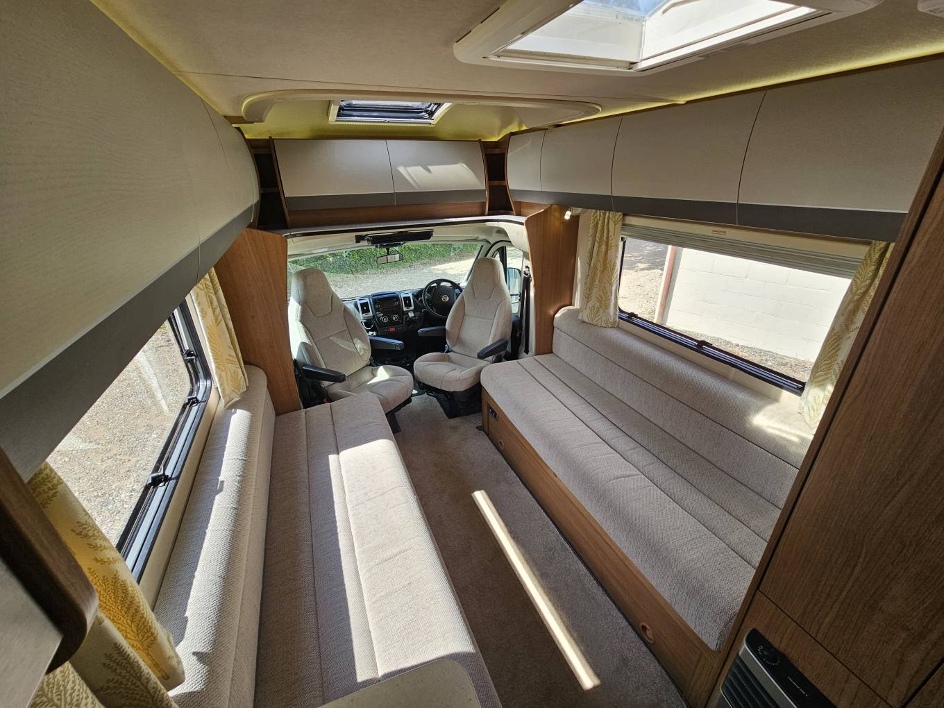 The cab seats swivel around to join the lounge making it a very sociable and relaxing space. Large windows, good lighting and overhead lockers give a nice open feel and plenty of storage.