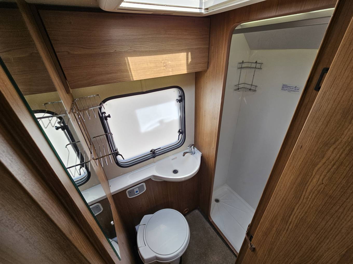 At the rear you have a full washroom with a separate shower cubicle, toilet and hand basin.