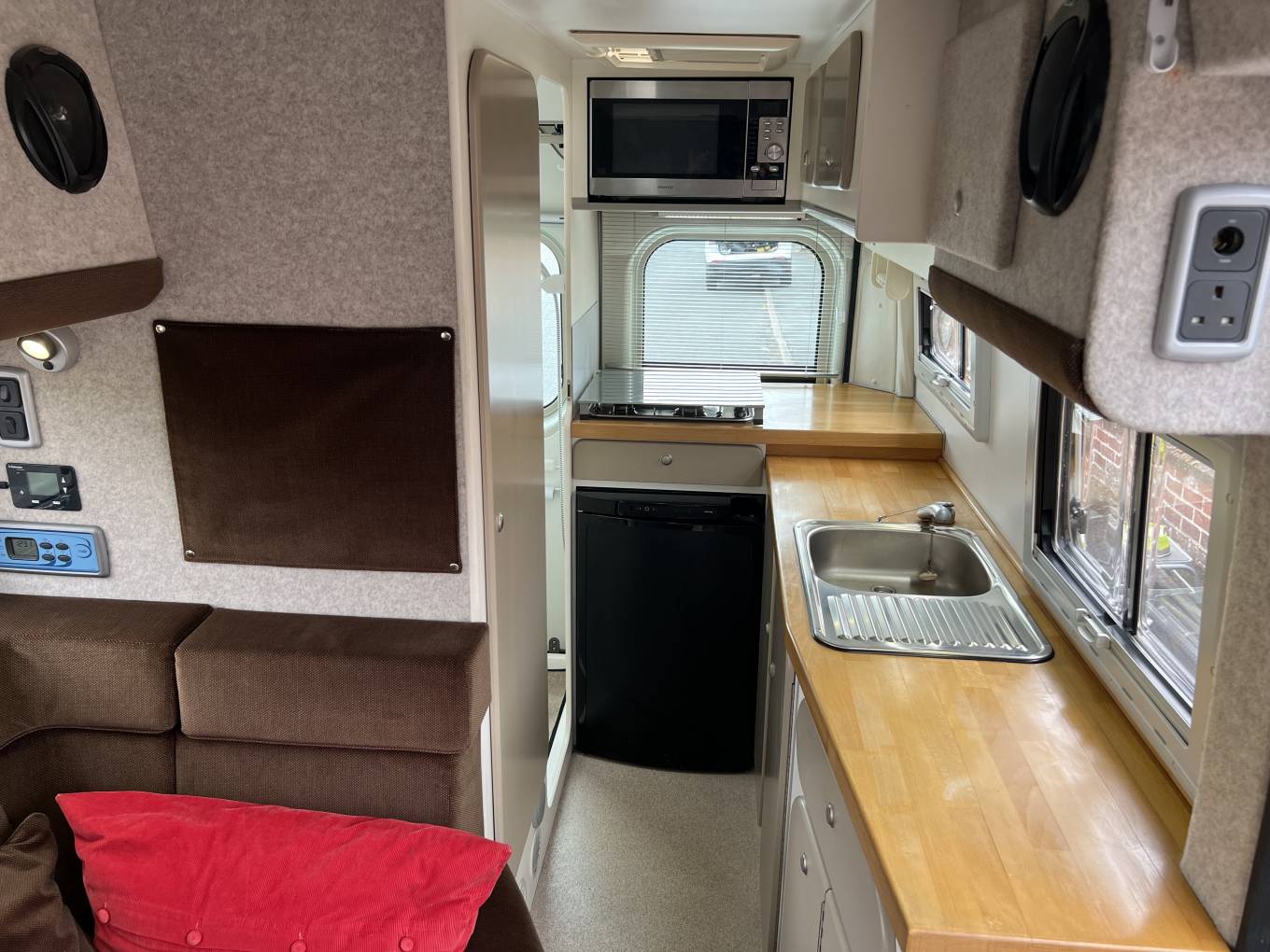 Upfront both seats swivel, there is a Kenwood media centre with radio/ CD/ DVD/ Bluetooth capability and rear camera. 6 speed manual gearbox, air conditioning, cruise control and for complete darkness, at night, Remis blinds.