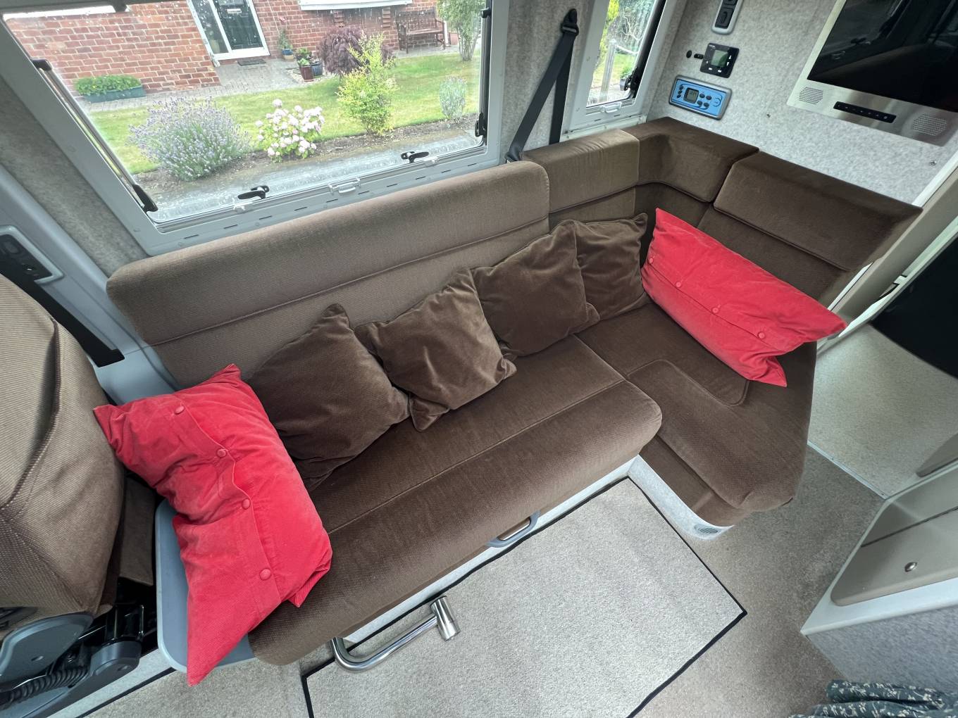 Briefly it compromises, rear kitchen and washroom, L shape sofa that converts to a bed and 2 swivel seats upfront. Its light and bright throughout.