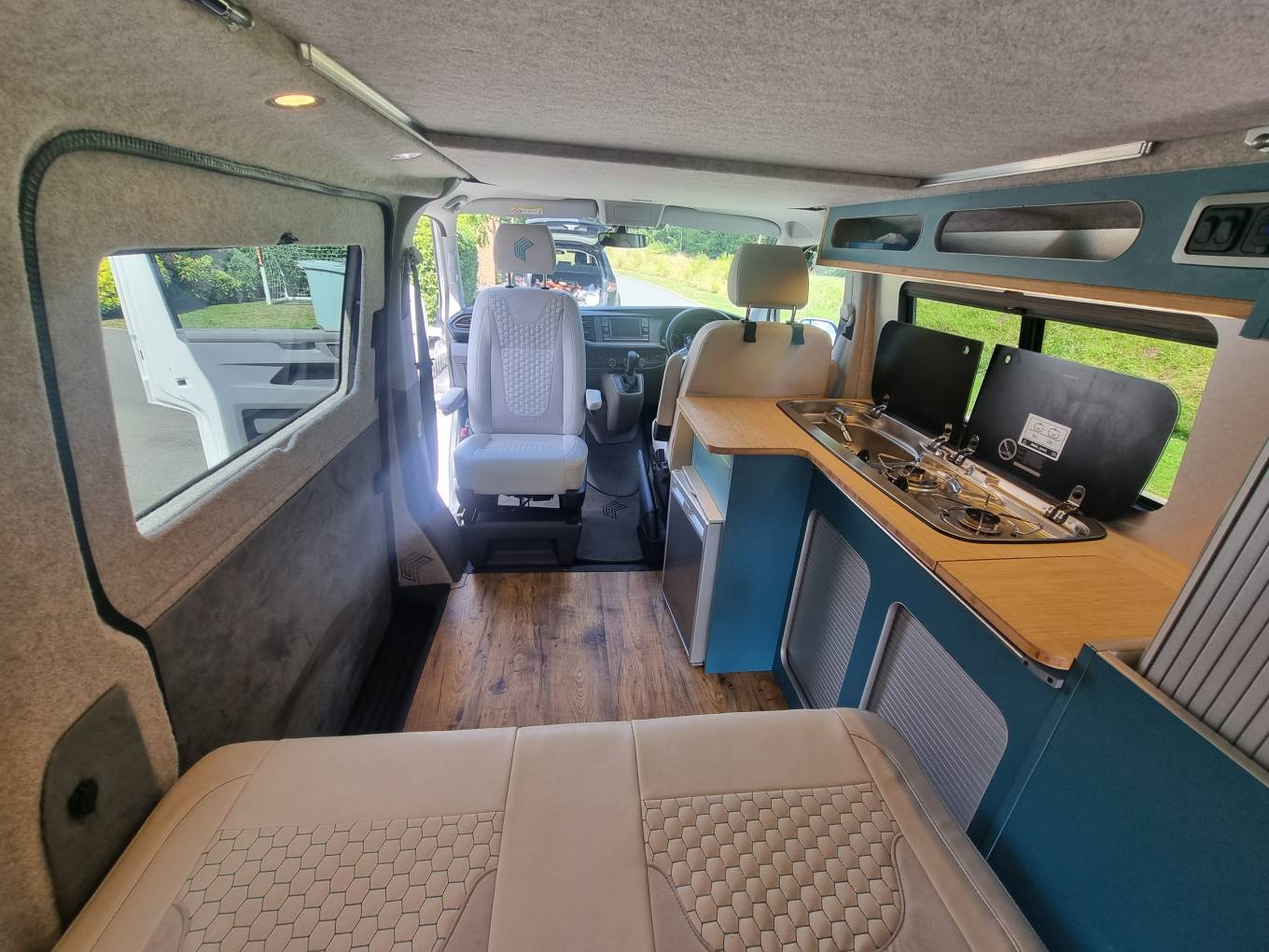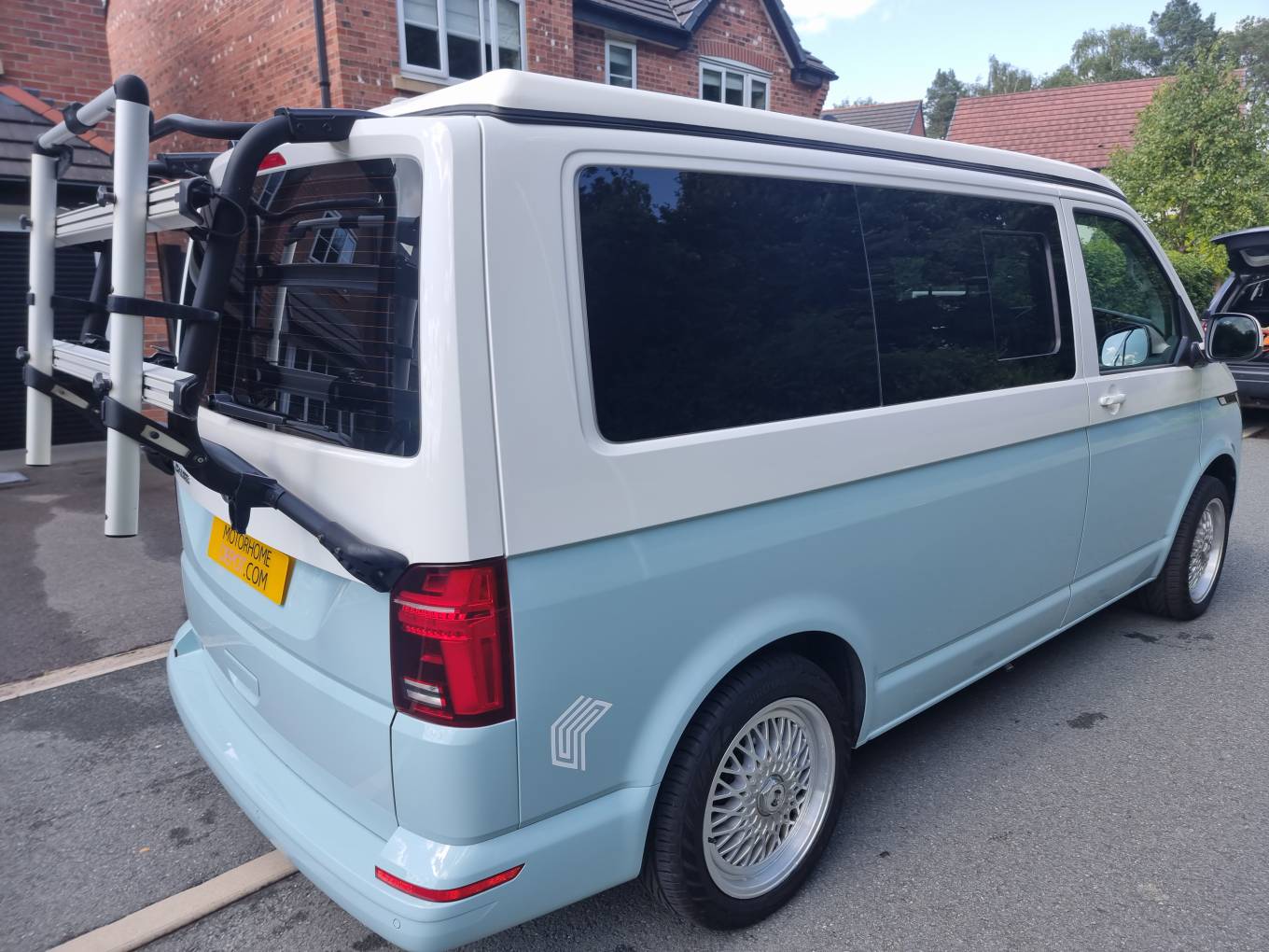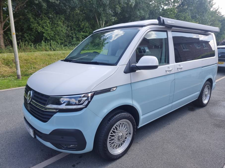 This VW T6.1 comes with a great spec and what a colour combination This model allows for use with both off-grid capabilities and on site camping alike. Featuring the stylish blue and white two-tone effect paint, Pop top and upgraded alloy wheels, this model stands out amongst the crowd.