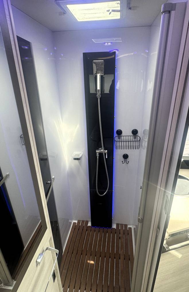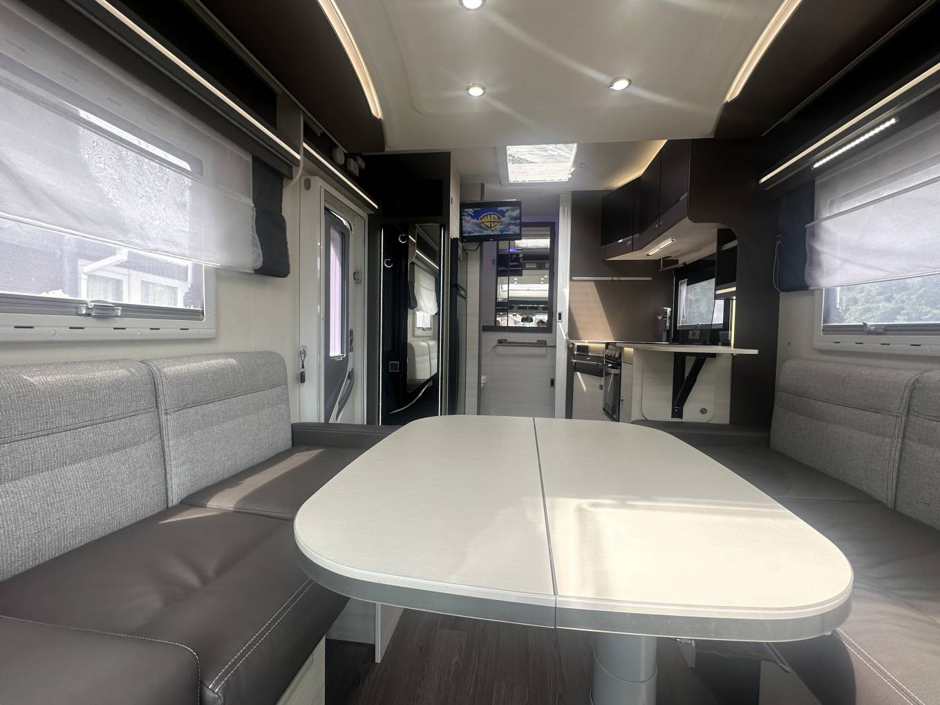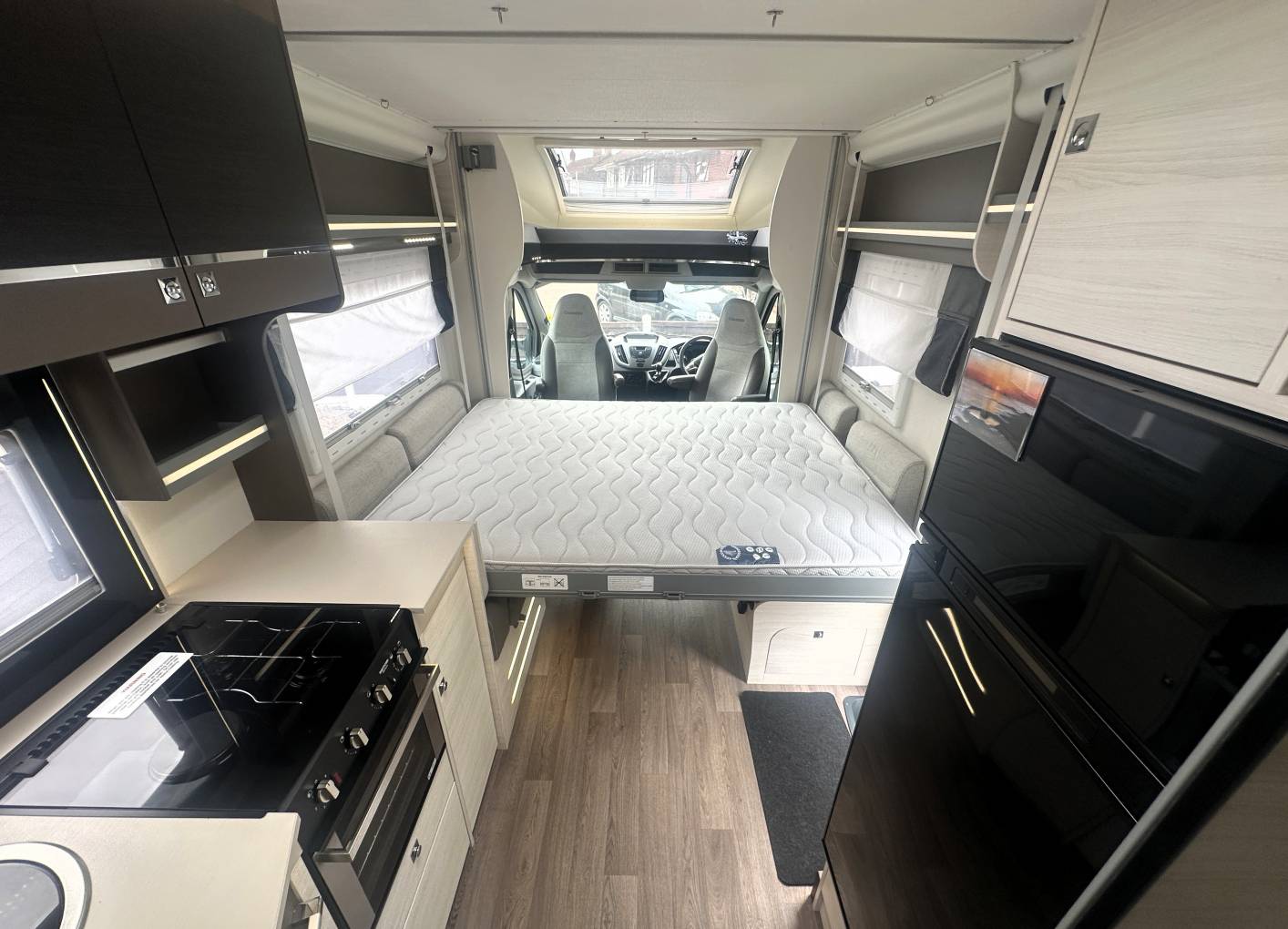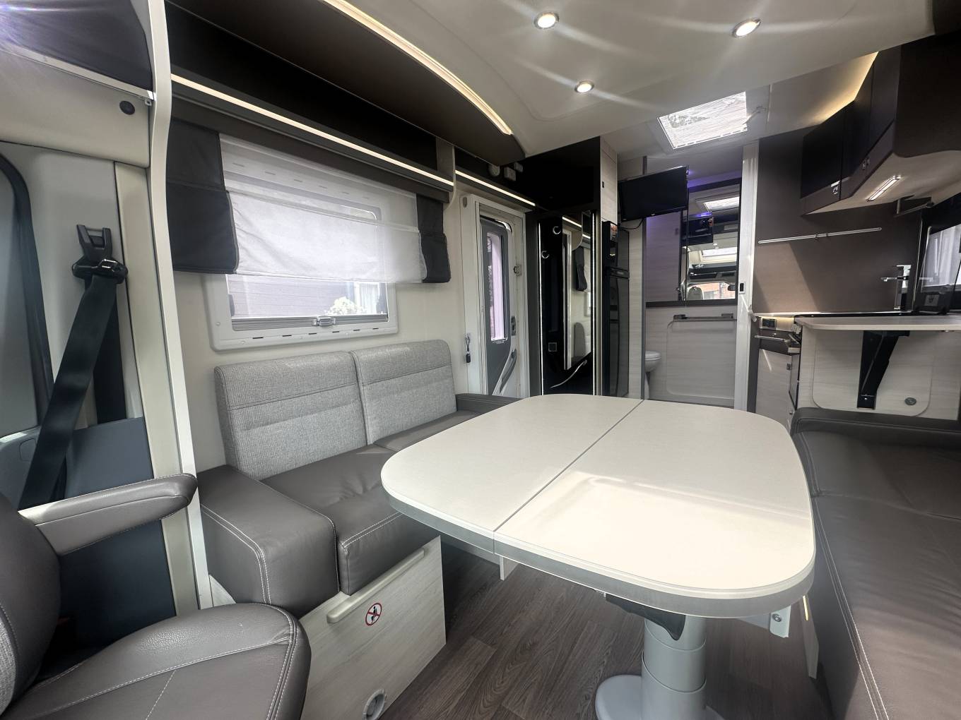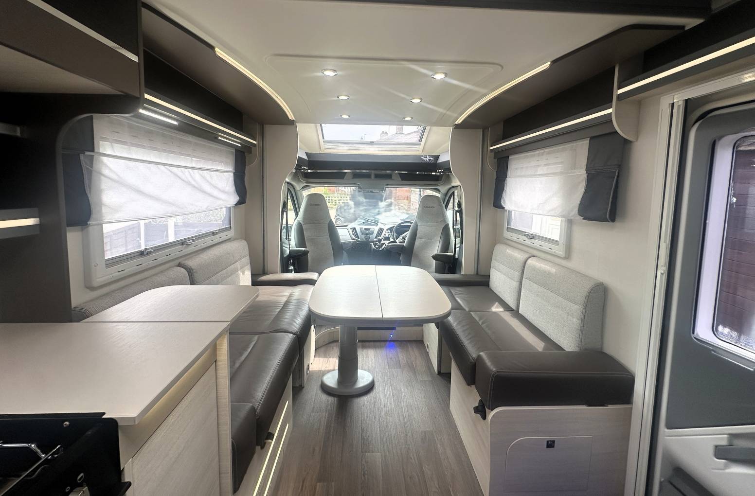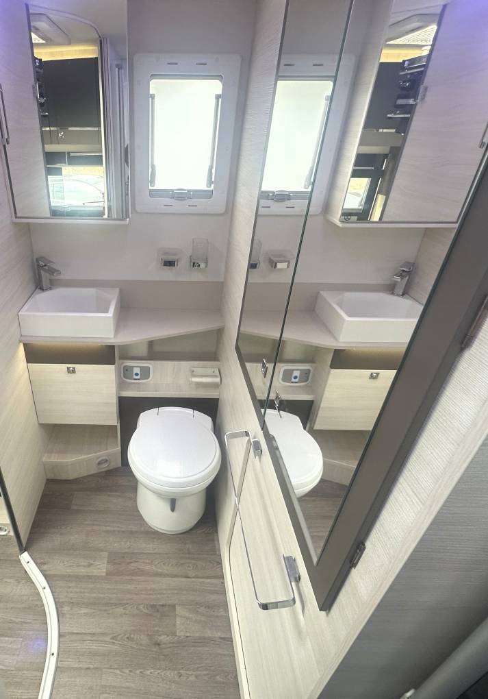 The design and clean lines within this motorhome are just stunning and, with pale wood units, light and neutral upholstery complimented by LED mood lighting provides a lovely place to relax and unwind and the efficient diesel heater makes this a serious all-year-round motorhome.