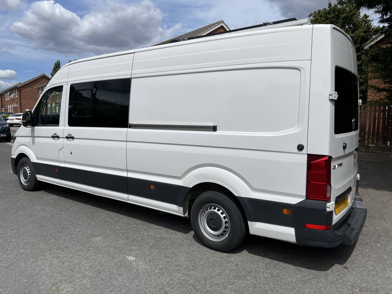 Based on the ever dependable Vw Crafter this LWB Cr35 model with only 93,800 miles on it is ready to take you away on off grid adventures, fun and holidays. With plenty of living space, a well equipped galley kitchen, separate washroom with shower & toilet. And at night time there is a generous, comfortable double bed at the back while the front lounge seat that easily becomes a single bed.
