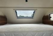 The sleeping arrangements consist of a fold down overcab bed with the front and rear lounges converting into double beds.