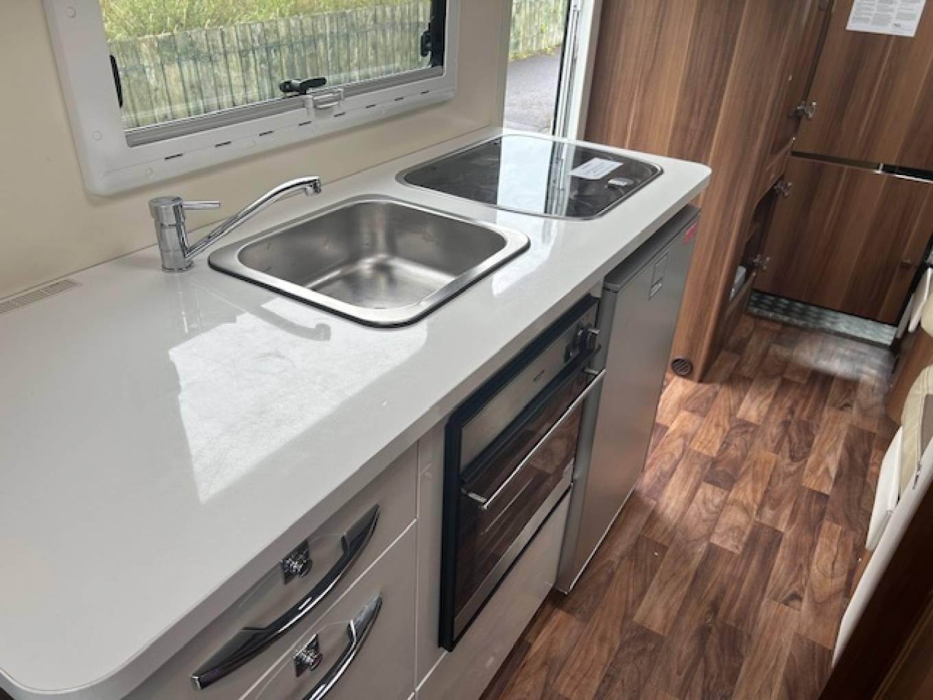 The kitchen is equipped with an oven, grill, 3 burner gas hob, large fridge/freezer, sink and plenty of storage.