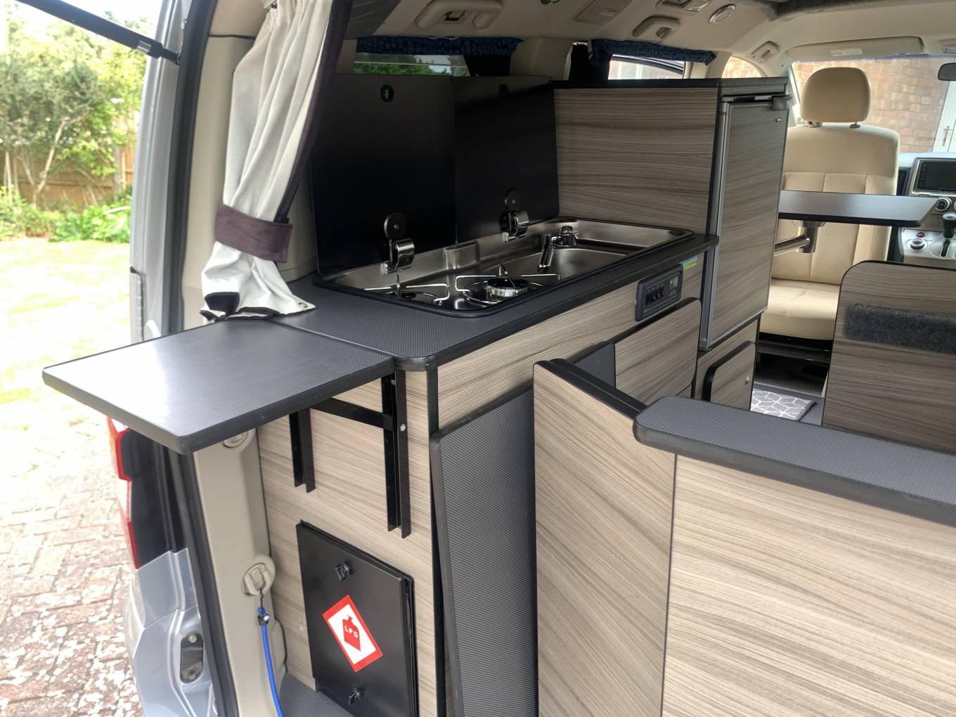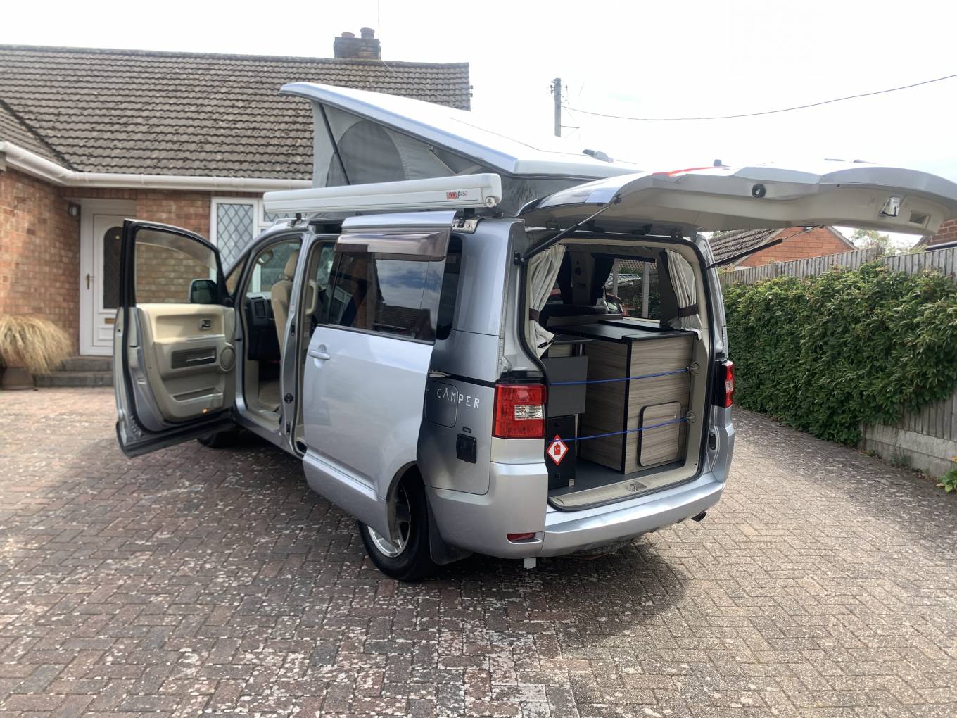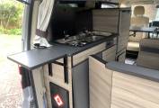 It has the added benefit of a Webaster Diesel Heater for all year round use, a wind out Sun Canopy, a 2 burner gas hob, a stainless sink fed by the onboard water tank and a roof mounted solar panel to keep the leisure battery topped up for extended off grid adventures.