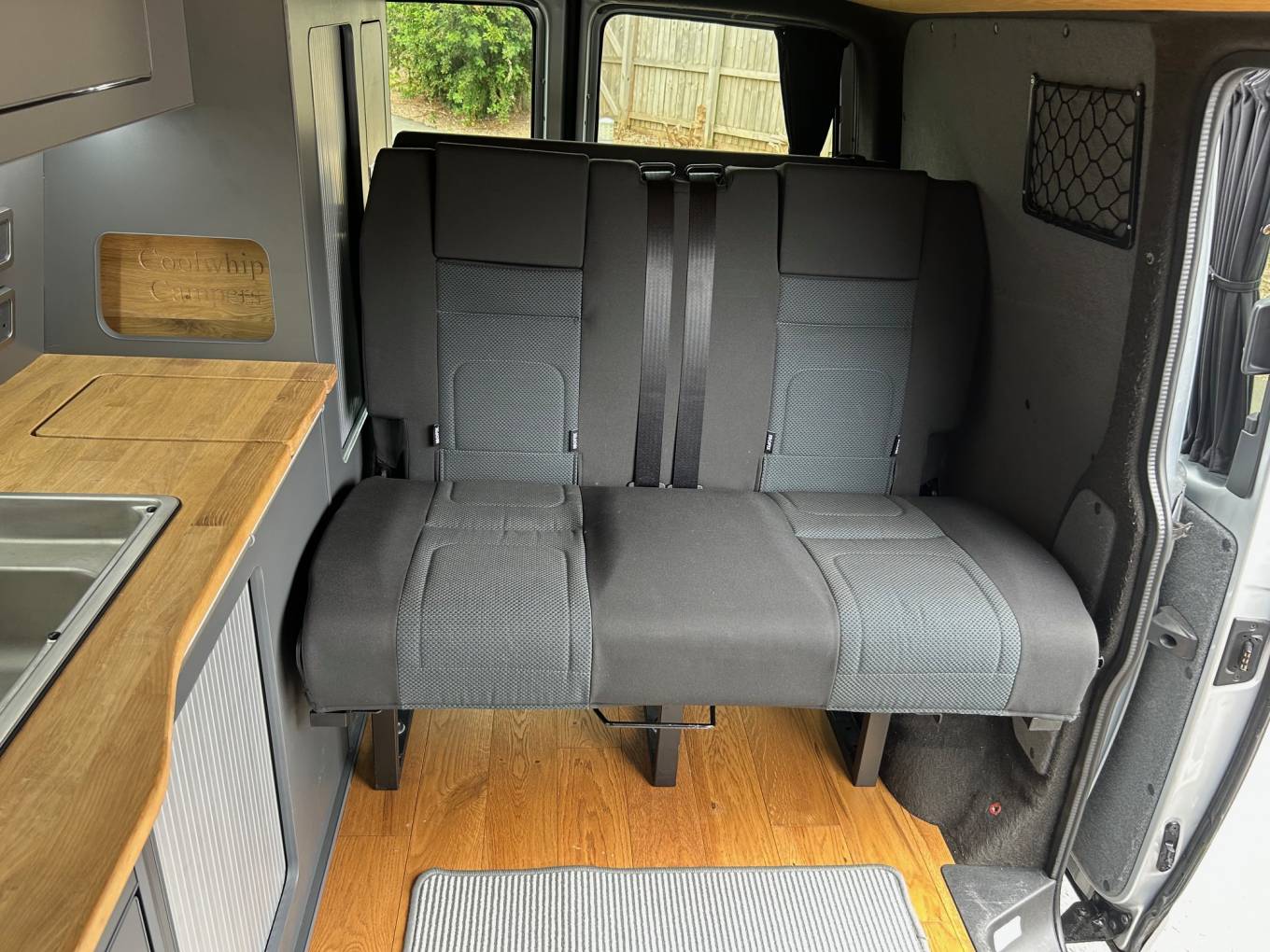 Excellent layout with sleeping places for 2 people in a rock and roll bed. The bed is not a standard £800 bed but a Rib Altair bed at £2,500. There are 5 travelling seat belts. The popular lounge area can be used for dining, sleeping and relaxing.