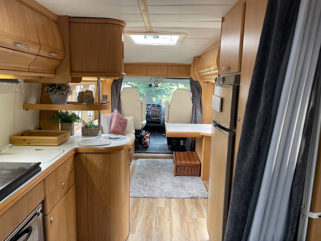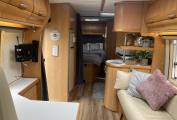 Although an older Motorhome Dobby has a great spacious living area combined with smart design. Offering an impressive living space with a large lounge area featuring a comfortable sofa, a fold-out dining table, and abundant storage throughout. Whether you're parked in the Alps or enjoying coastal views, you'll feel right at home and with air conditioning in the habitation area you will be comfortable whatever the temperature.