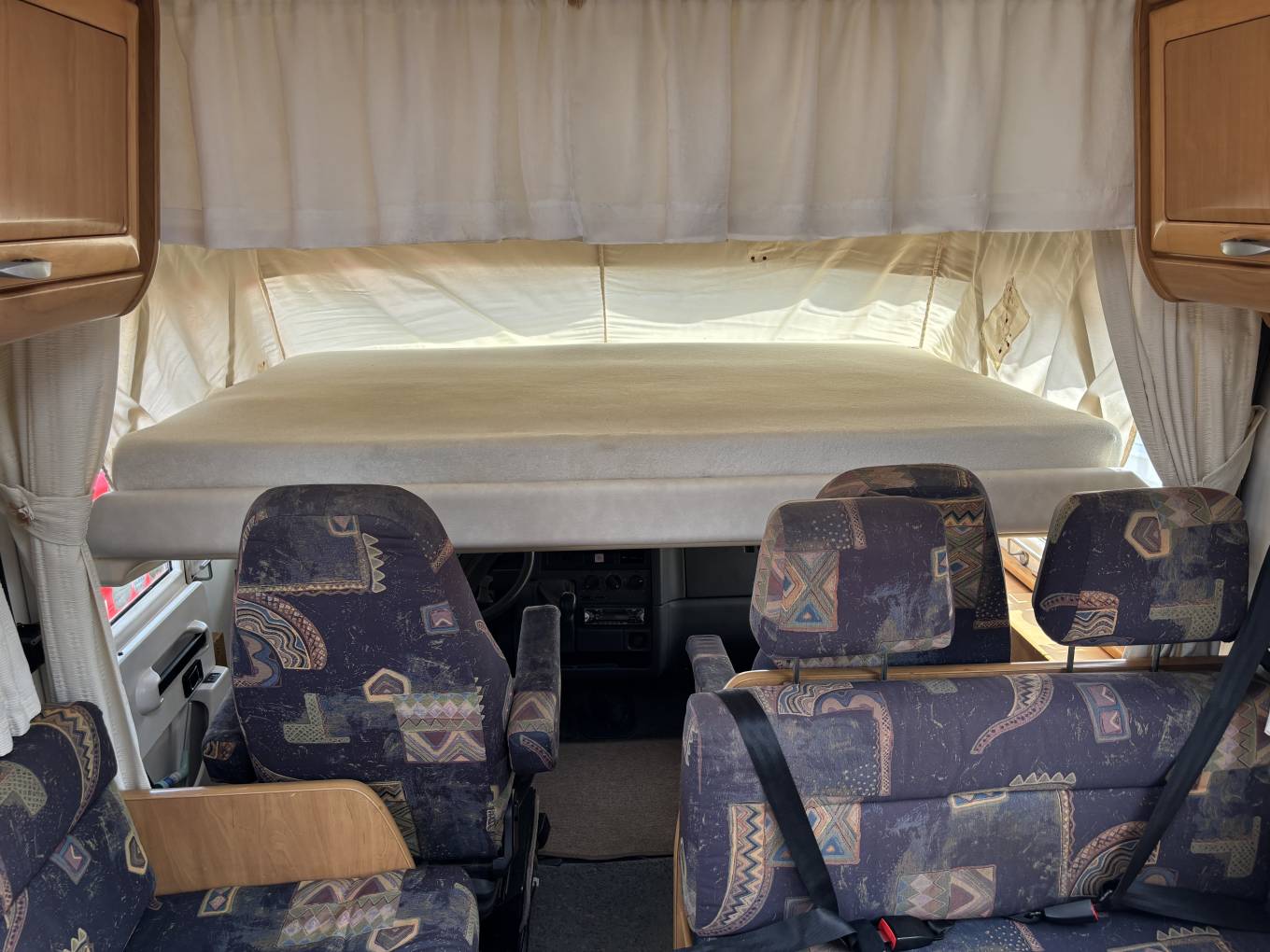 At the front, the classic pull-down over-cab double bed provides a comfortable sleeping space without compromising daytime living space. Below, the front dinette with 4 belted seats converts into another double bed, while an additional single sleeping space ensures everyone has a place to rest.