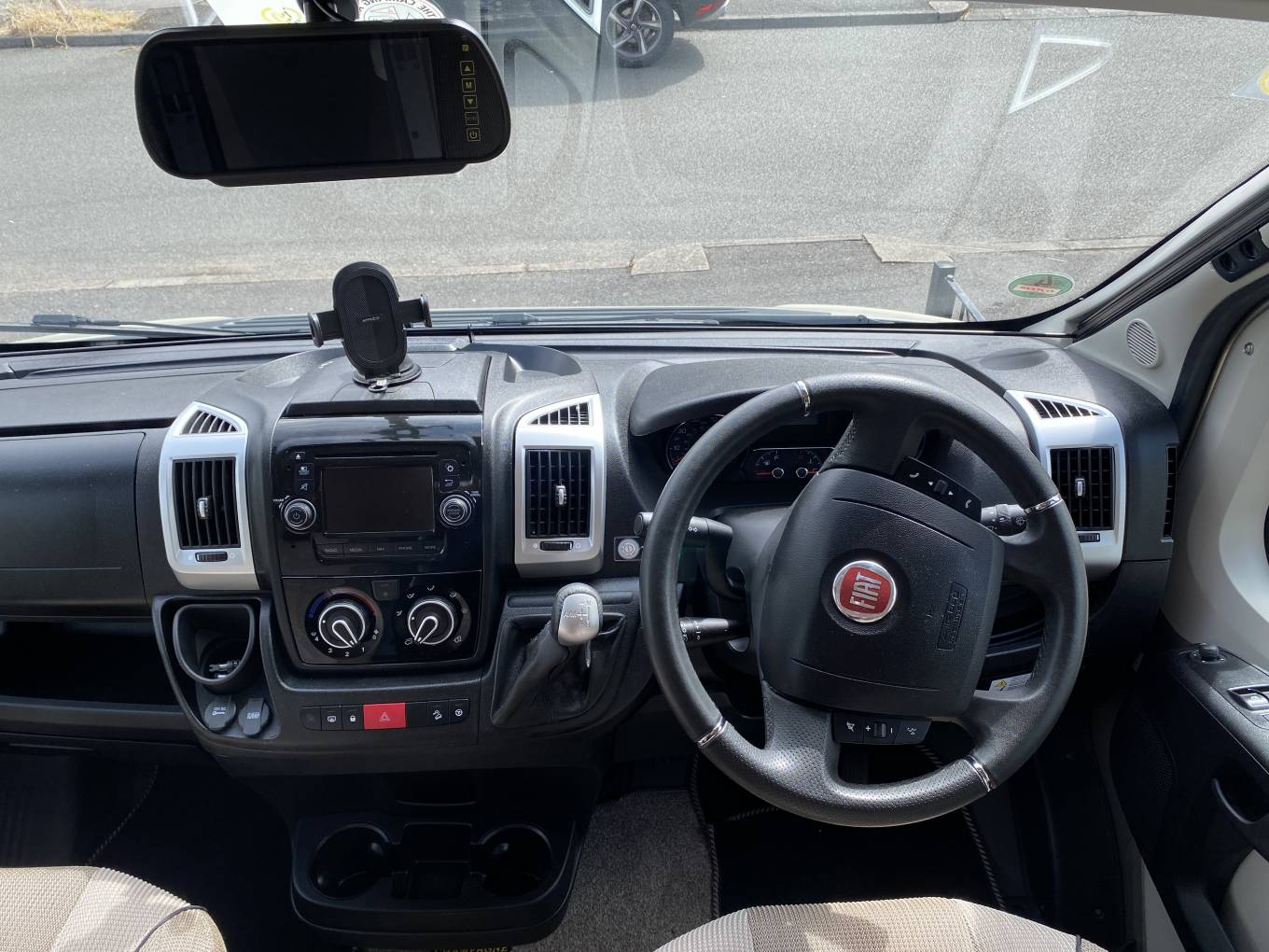 The fixed French bed offers a large and comfortable sleeping space, while the large rear bathroom provides generous facilities including a shower and toilet. Inside, you’ll find a fully equipped kitchen with everything you need to cook on the go, alongside a spacious lounge area perfect for relaxing or entertaining that easily converts into a double bed. Additional features include built-in WiFi, solar panel, cab air conditioning, gaslo system, new dual reverse camera installed in 2025, reverse sensors, satellite navigation, wind out awning, outside bbq point, outside shower, outside 240v plug point and microwave.