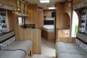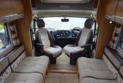 FRONT PARALLEL LOUNGE - With fold away table and swivel Cab Seats. Easily converts to a large double bed. Overhead lockers, under seat storage.