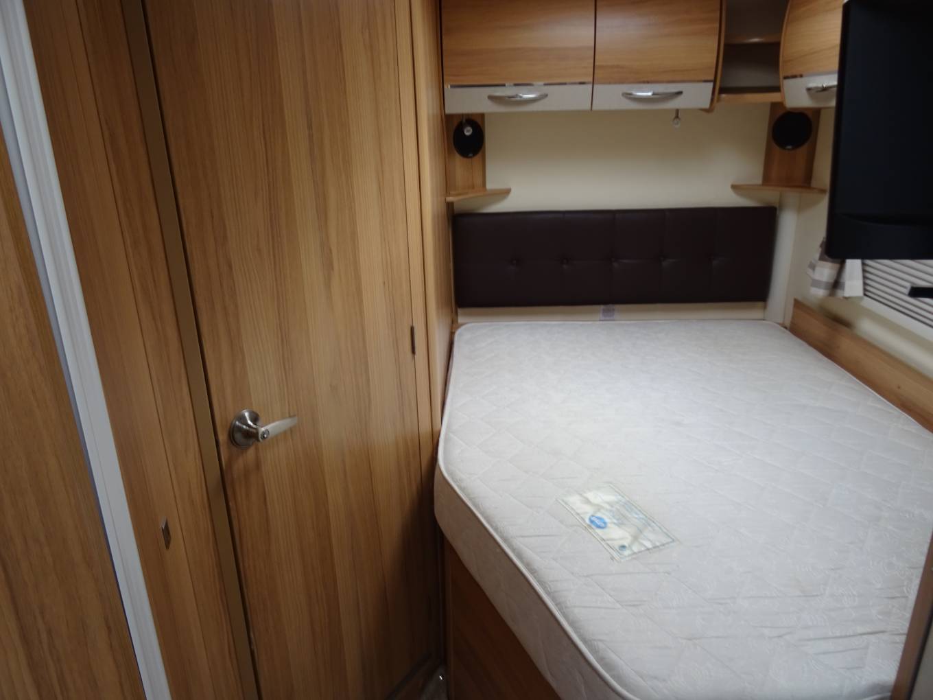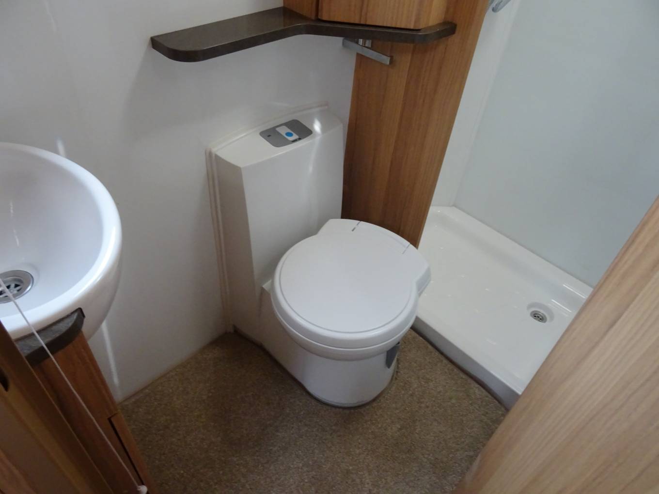 REAR EN-SUITE BEDROOM - With fixed lift up French bed, wardrobe, washroom with swivel electric toilet and walk in shower cubicle.