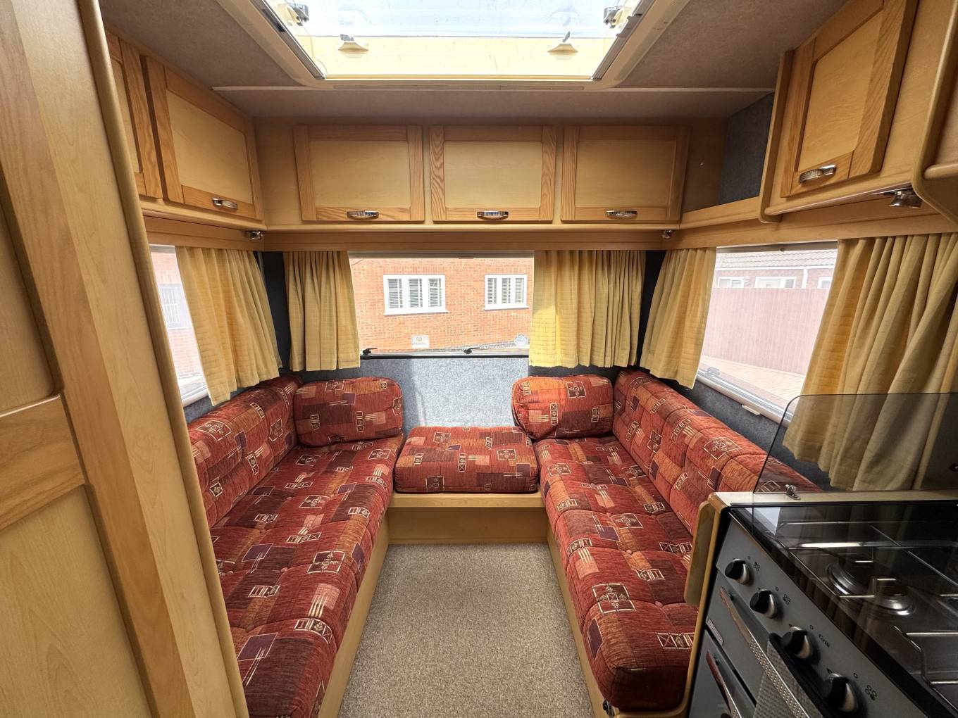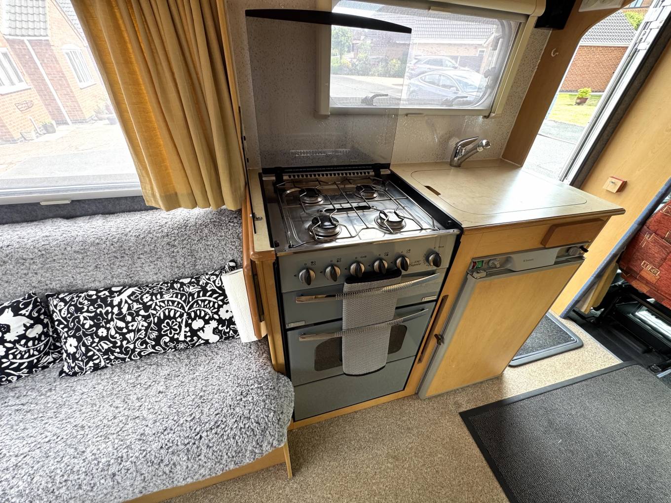 This compact yet practical 4-berth motorhome is built on a Peugeot Boxer chassis with a 2.0L diesel engine and manual transmission. Inside, the layout is designed with comfort and function in mind. At the rear, a spacious U-shaped lounge offers ample seating space that easily converts into a generously sized double bed. Large windows surround the lounge, allowing plenty of natural light to enter the living area.