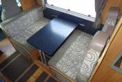 To the front of the vehicle, you have the dinette area with the collapsible dining table to make up as a double bed.