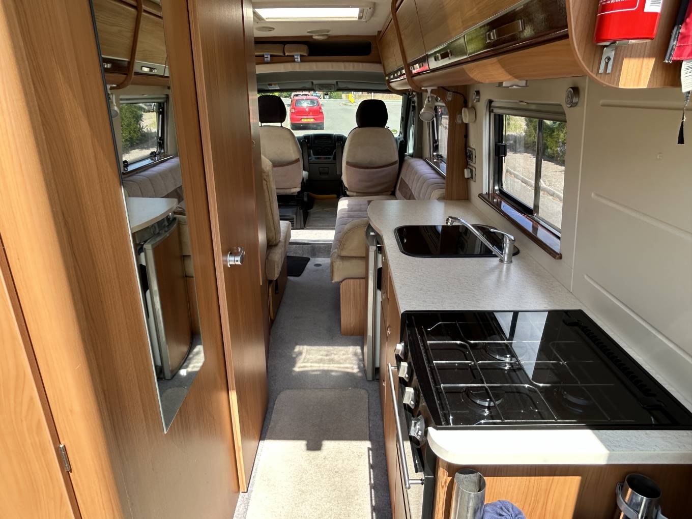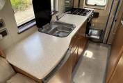The washroom features a shower, a Thetford cassette toilet, a foldaway wash basin and a mirrored cabinet to store your toiletries and you'll also have no issue rustling up great food on the go as the impressive kitchen features a 3 gas burner hob as well as an oven and grill.