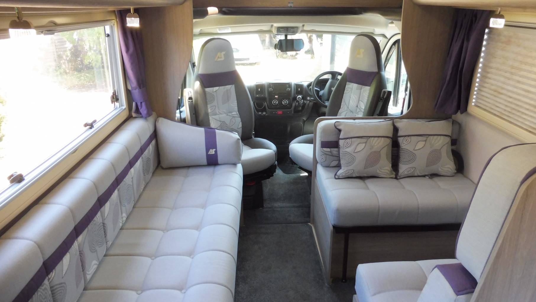 The main living area has two swivelling Captains seats and further seating for six more in comfort around a free-standing table. Two rooflights and large windows ensure a bright open feel to this area which is great for relaxing. At night-time the seating easily converts into a large double bed or alternatively two singles.