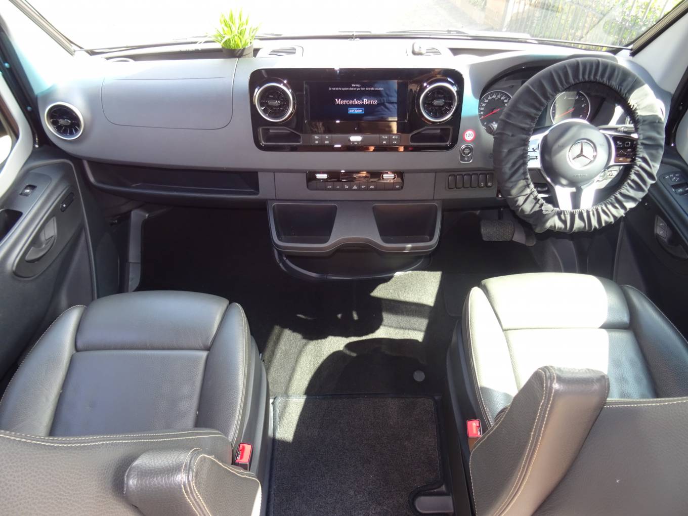 For your driving comfort you have a 9-inch MBUX multimedia system with navigation, Bluetooth and a rear-view camera for easy manoeuvring. The cab area also has heated seats dual armrests and privacy blinds throughout.