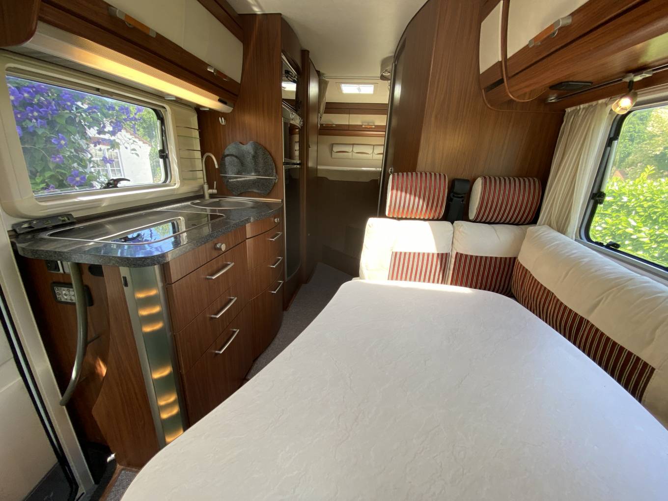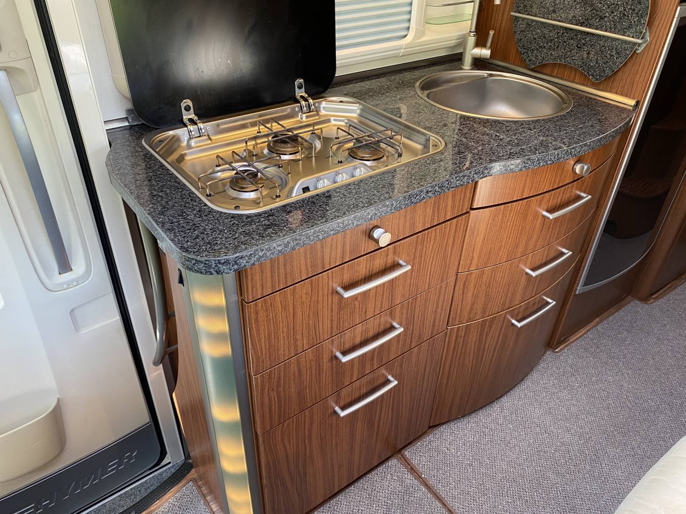 Kitchen • Smev three gas hob burners • Dometic combination oven and grill • Circular sink with mixer tap and worktop insert • Dometic fridge with icebox above • Lockable soft close drawers •Cupboard and locker space.