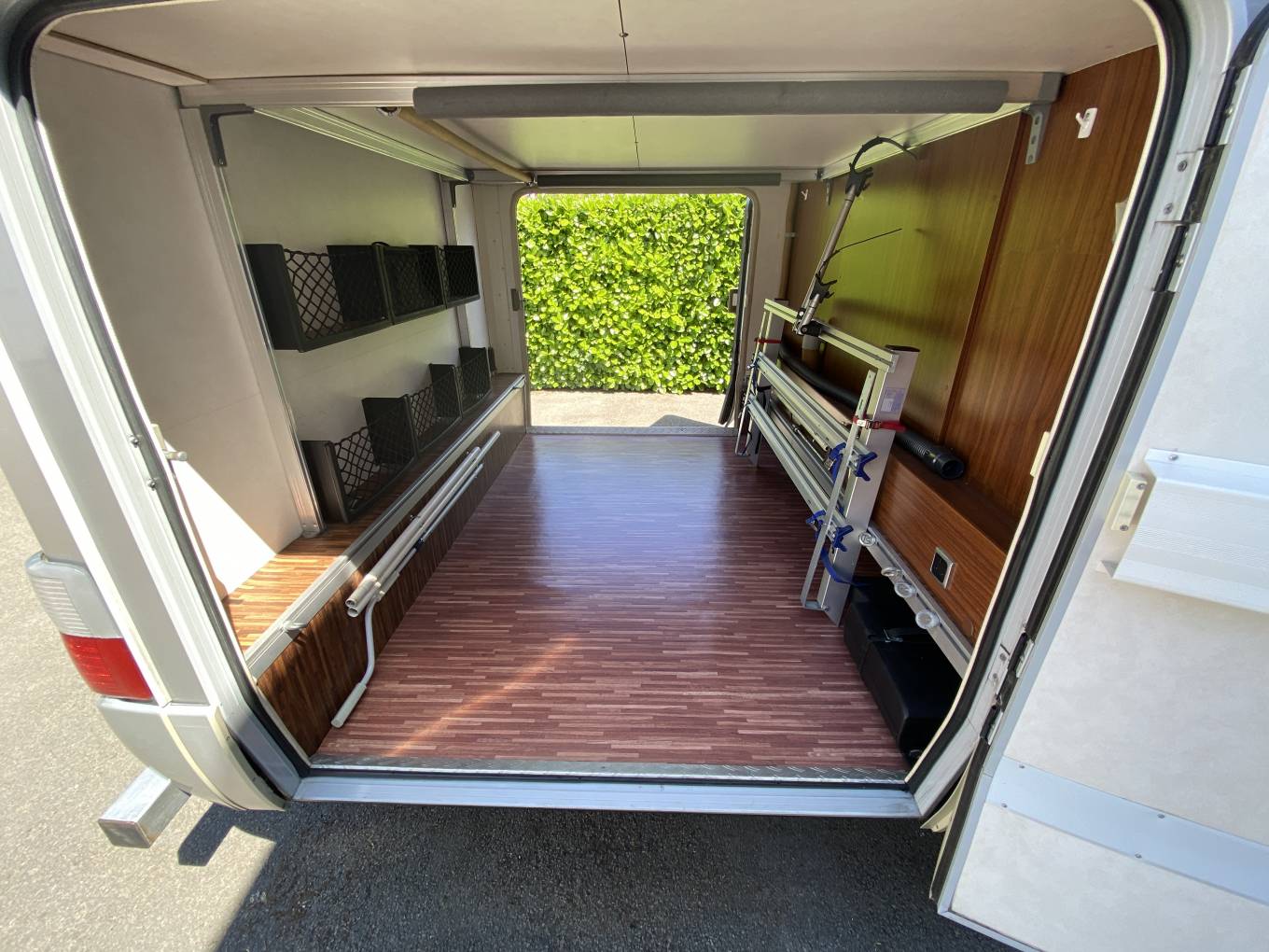 Habitation body and exterior equipment • Skylights • Gas locker with two GasLow re-fillable bottles • Two leisure batteries • 120w solar panel • Reversing camera • Omnistor manual wind out awning • Fold away cycle rack for two bikes inside the garage • Electric entry step • Awning light • Access to garage from both sides • Garage space has heat, light and power • Habitation door flyscreen • Front fog lamps • Towbar on bumper bar •Status TV Aerial • Sigma alarm • External BBQ point.