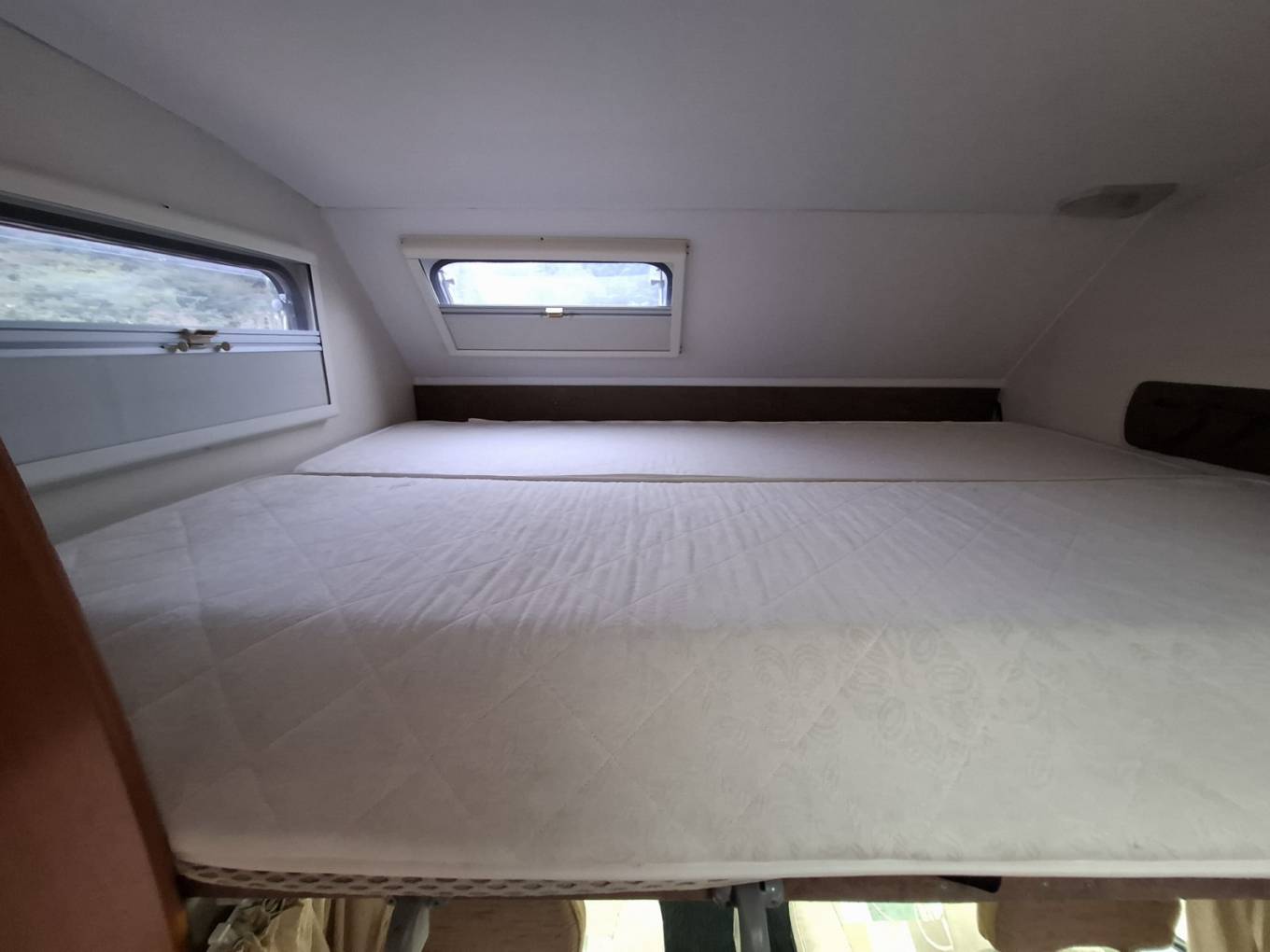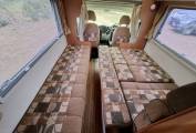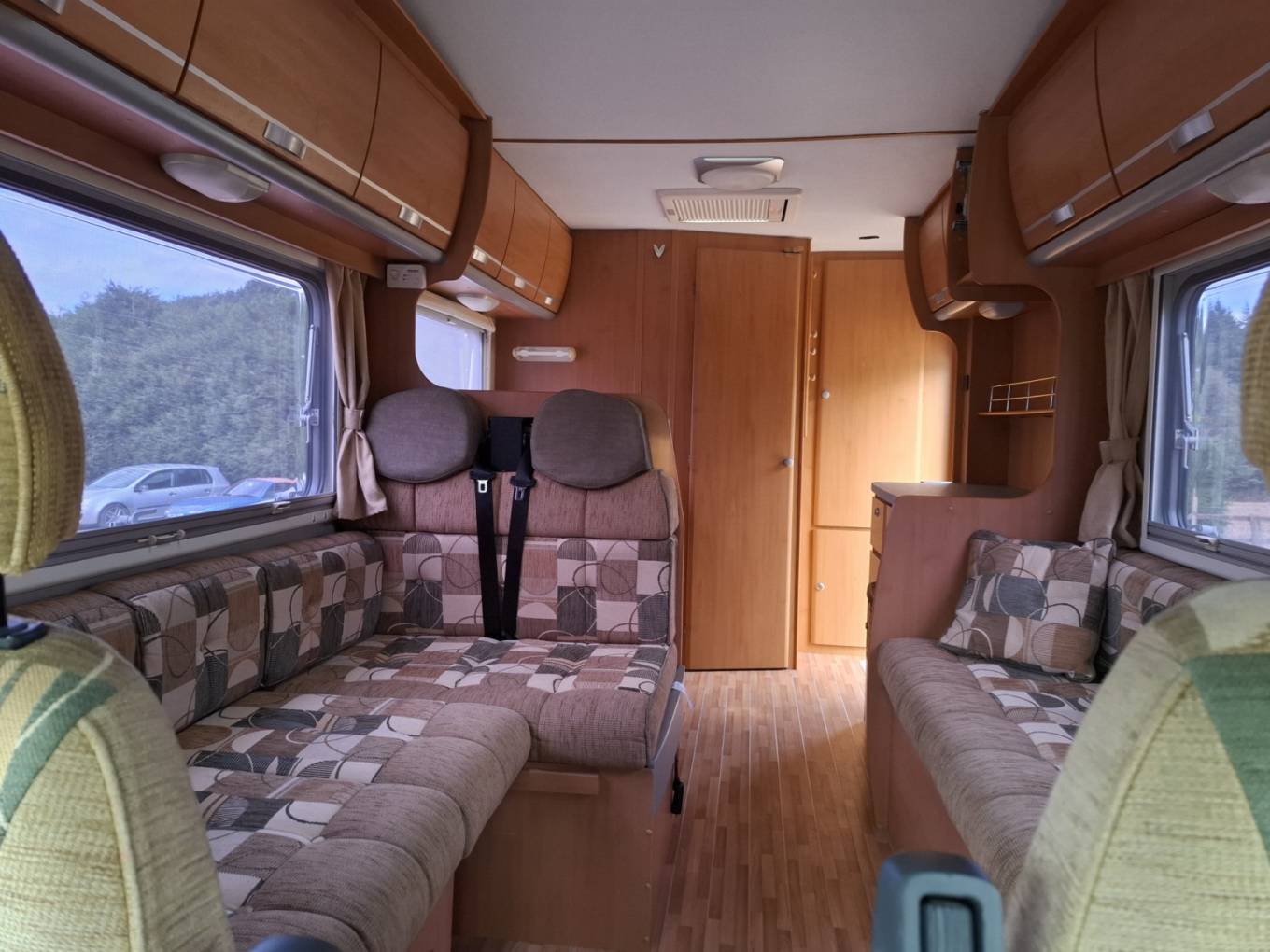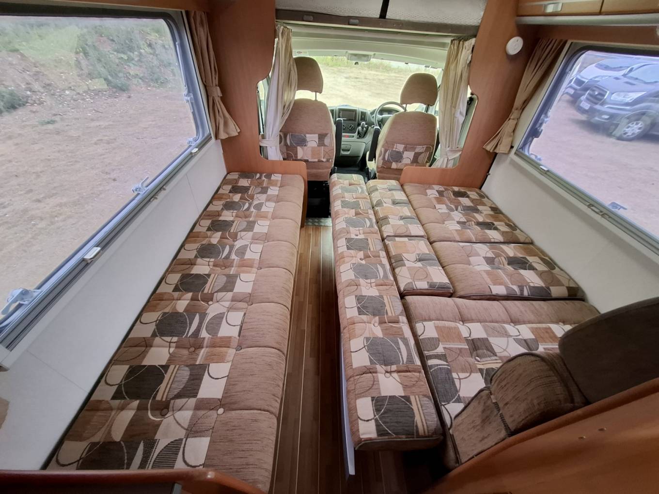 The forward habitation comprises offside L-shaped seating (with two forward facing seats with seat belts for additional travellers), and an opposing side sofa. Well lit by the surrounding windows and overhead skylights, this area can be enhanced for leisure/ dining by use of the swivel cab seats and a free standing table, while the habitation seating can be readily converted into a transverse double berth.