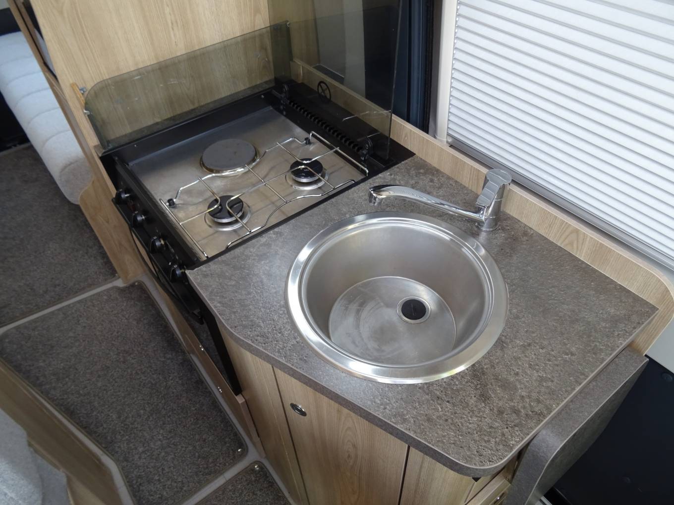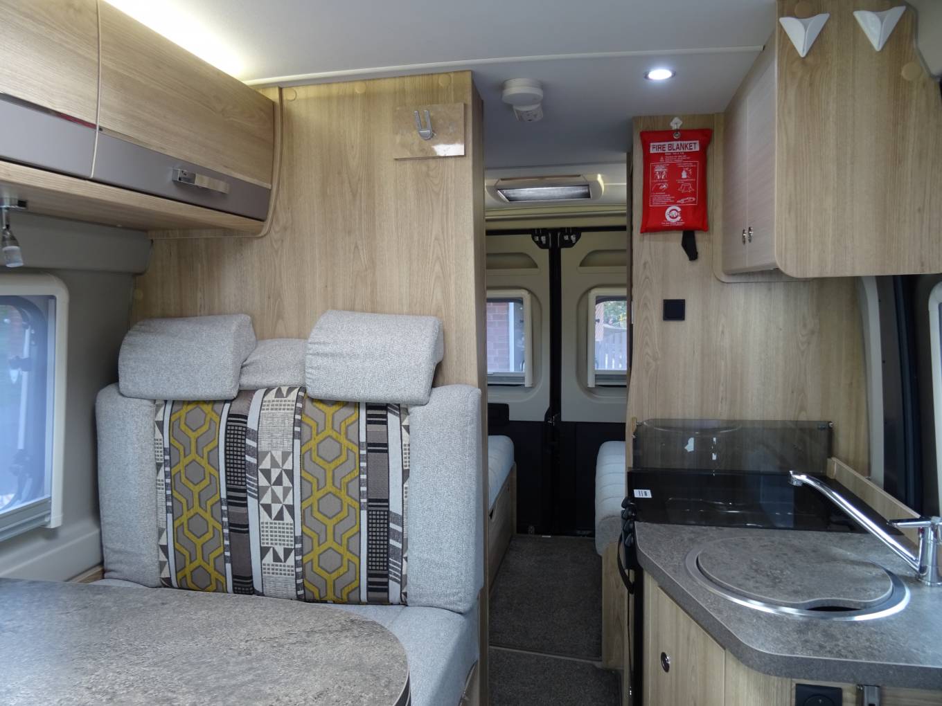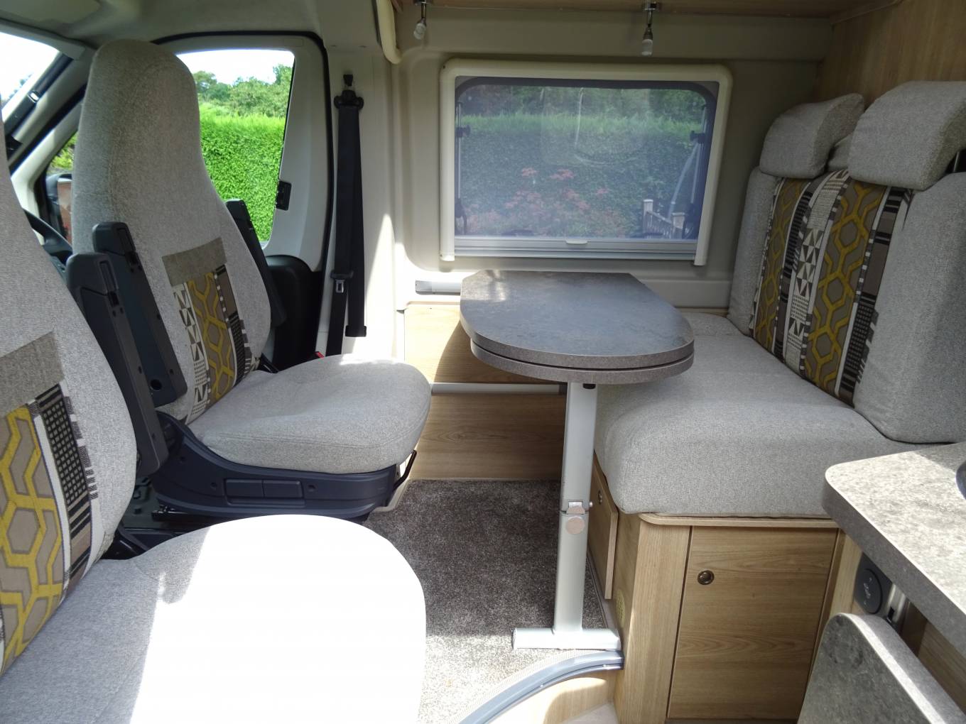 The CV40 features a Pullman-style lounge up front with two additional seatbelts, which can be made up into a single bed. The rear lounge can easily seat 4 and converts to a double bed, creating a flexible 3-berth campervan. The kitchen area is equipped with dual fuel hob, oven and grill and fridge-freezer. The spacious central wet room offers everything you need in a bathroom including a cassette toilet, hand basin and shower.