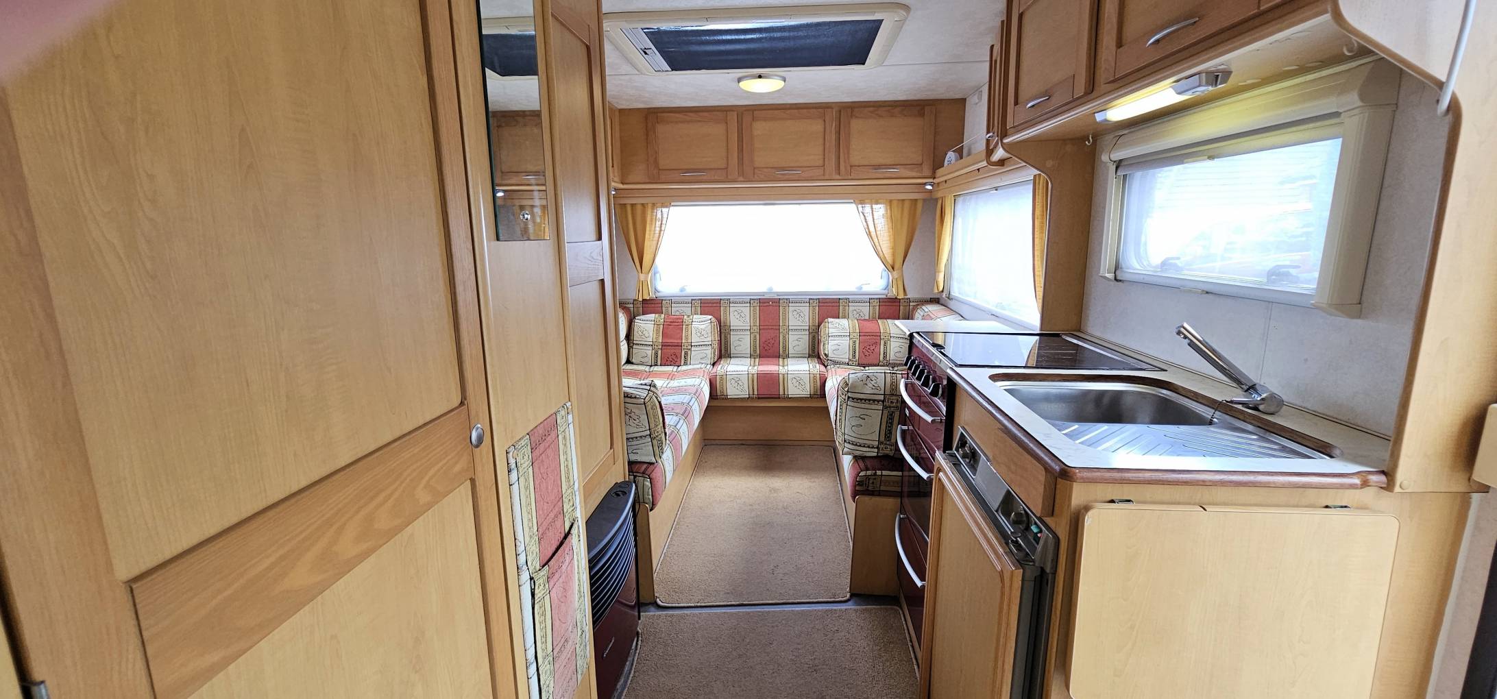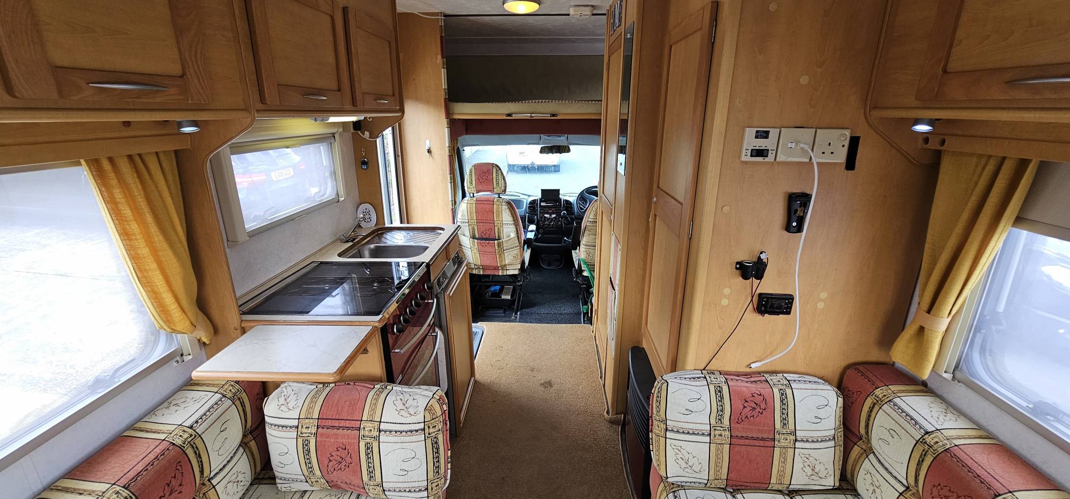 This well-maintained model has covered just 42,700 miles and offers a practical four-berth layout. The spacious rear U-shaped lounge provides a comfortable living area, which easily converts into a double bed, with a further double located above the cab.