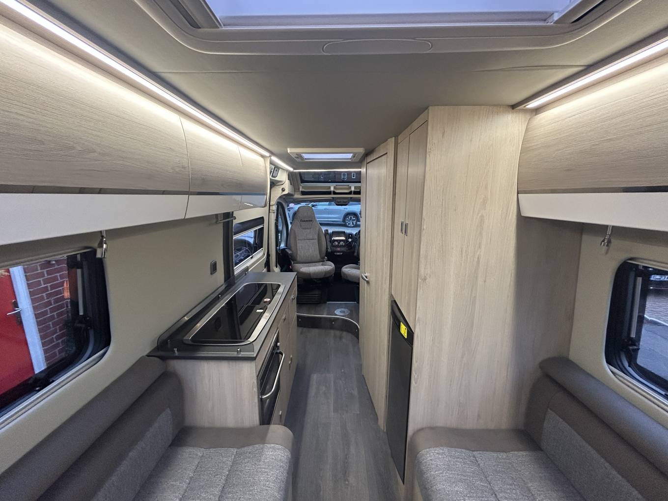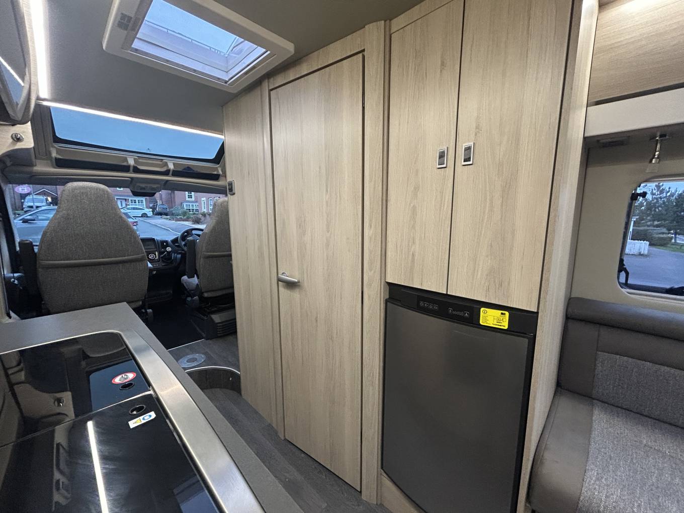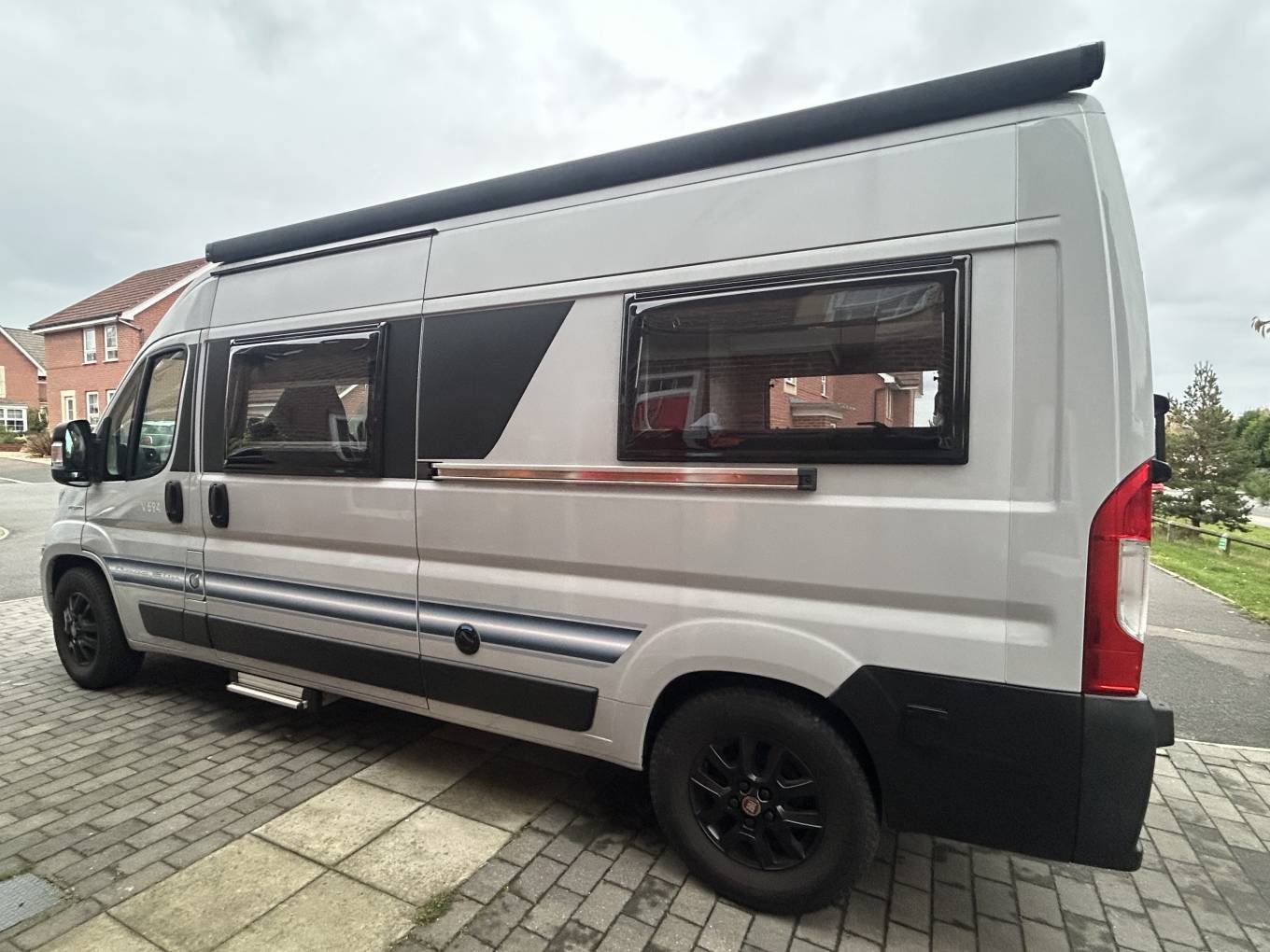 Based on the Fiat Ducato chassis with a 2.3 Litre engine and 6 speed manual transmission. The motorhome is right hand drive. Presented in excellent condition with only 11,420 miles travelled. Mot until June 2026, Last Hab Check was in March 2025 and last service was in June last year. Excellent layout for 2 people with the rear lounge which converts in to a large double bed. There are 2 travelling seat belts. The popular lounge area can be used for dining or simply sleeping and relaxing. The two front seats swivel and a circular table makes a secondary lounge area, The kitchen is fully equipped with a 2-burner gas hob, oven, grill a sink with mixer tap and plenty of work-space, also a Dometic fridge/freezer. This motorhome comes with a large specification list including lots of cupboards, swivelling front seats, airbags, radio, rear view reversing camera, electric step, bike rack and large leisure battery for off grid camping. This motorhome has LPG and Electric heating. There is a large solar panel on the roof and a gas BBQ point on the outside. It is Right Hand Drive with a 6-Speed Manual gearbox. It comes with a Fire Extinguisher, Underslung LPG tank and a 240v Hook-Up Cable. There is an immobiliser and Scorpion 5 Tracker installed. Length 5.99m. Width 2.05m Height 2.61m Weight 3300kg. This motorhome comes with a 12 month warranty, finance and part exchange is available. it can be viewed in Mansfield by appointment only.