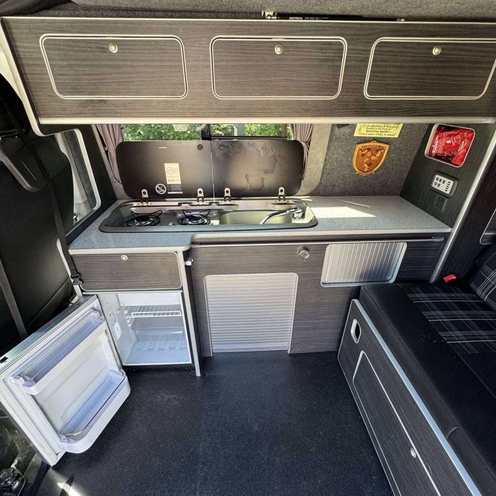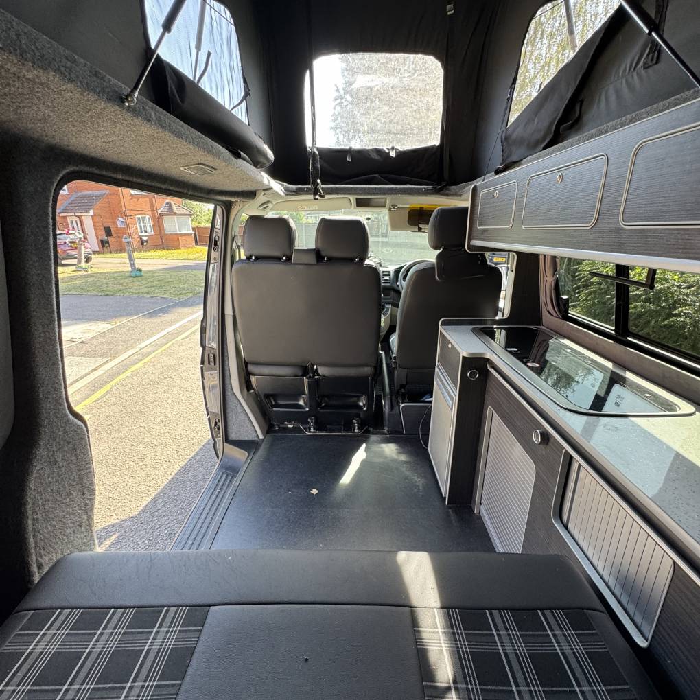 In the habitation area you have a rock n roll bed to both allow for more people to be travelled with its 2 additional seatbelts and also to cater for 2 of the berths. The other berths are catered for in the pop top roof which also allows for you to stand freely and give more space. The passenger captains seat also allows for more people to be seated in the main living area.