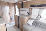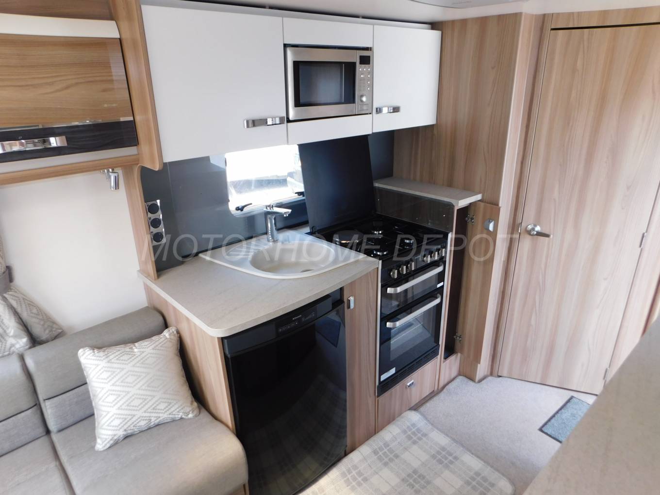 - The Kitchen: Well specified with a brand-new Thetford cooker with dual fuel hob - 3 gas burners & electric hotplate, black glass lid, gas grill & oven beneath. Round sink. chrome mixer tap & plastic draining board, Dometic 3-way powered fridge freezer with removeable freezer box, microwave oven, plus plenty of cupboards & drawers to store-away your holiday provisions.