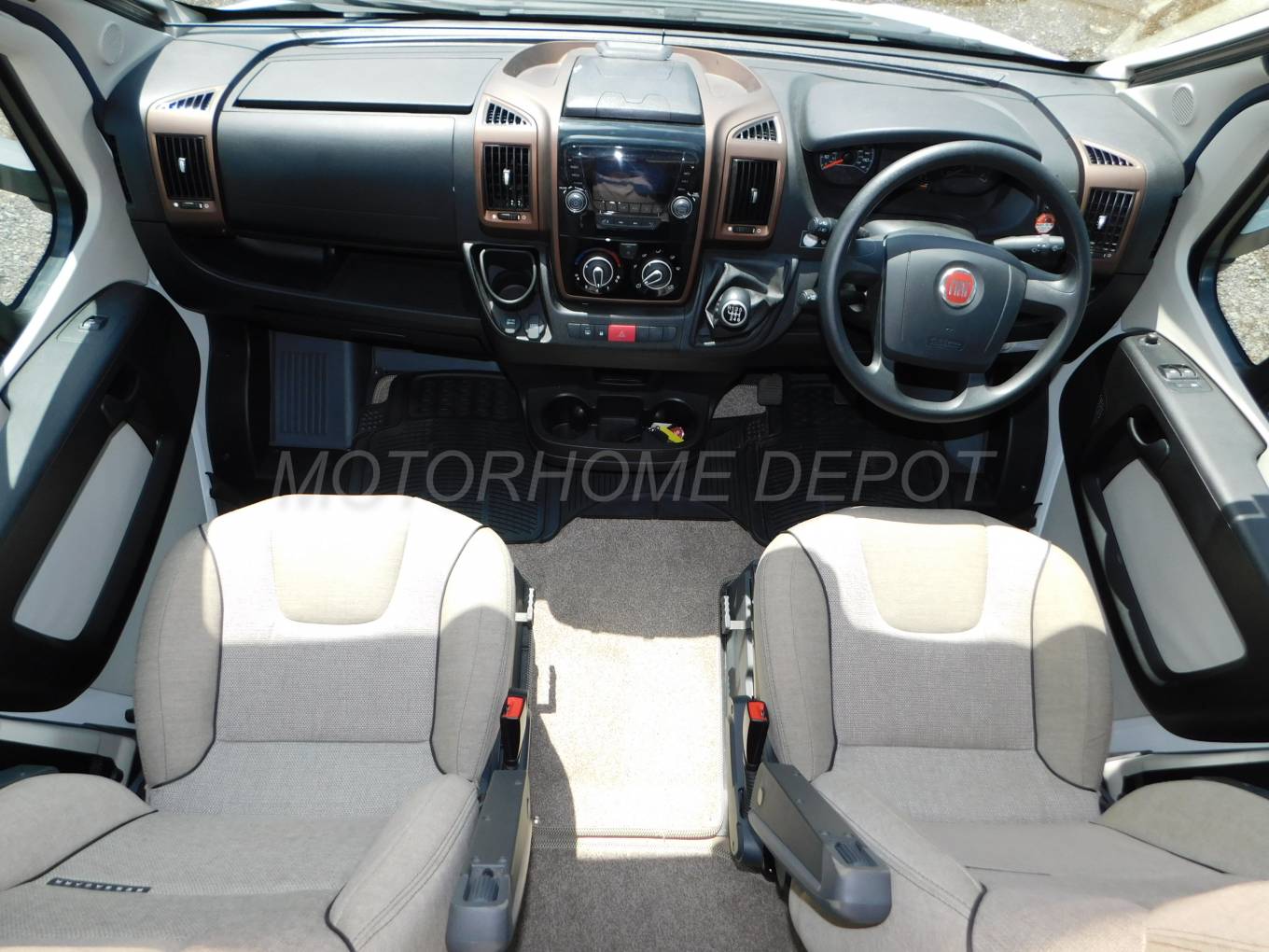 - The Cab: Two swivelling seats, air conditioning, cruise control, mirror mounted reversing camera monitor, 2 x 12v power. Multi-media unit with Radio, Media USB & Aux input, Bluetooth phone/music. 2 x 12v power outlets. Built-in privacy blinds to side windows & windscreen, electric windows, mirrors & central locking. Helpful side-steps each side, 2 sets of keys.