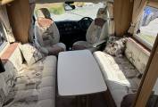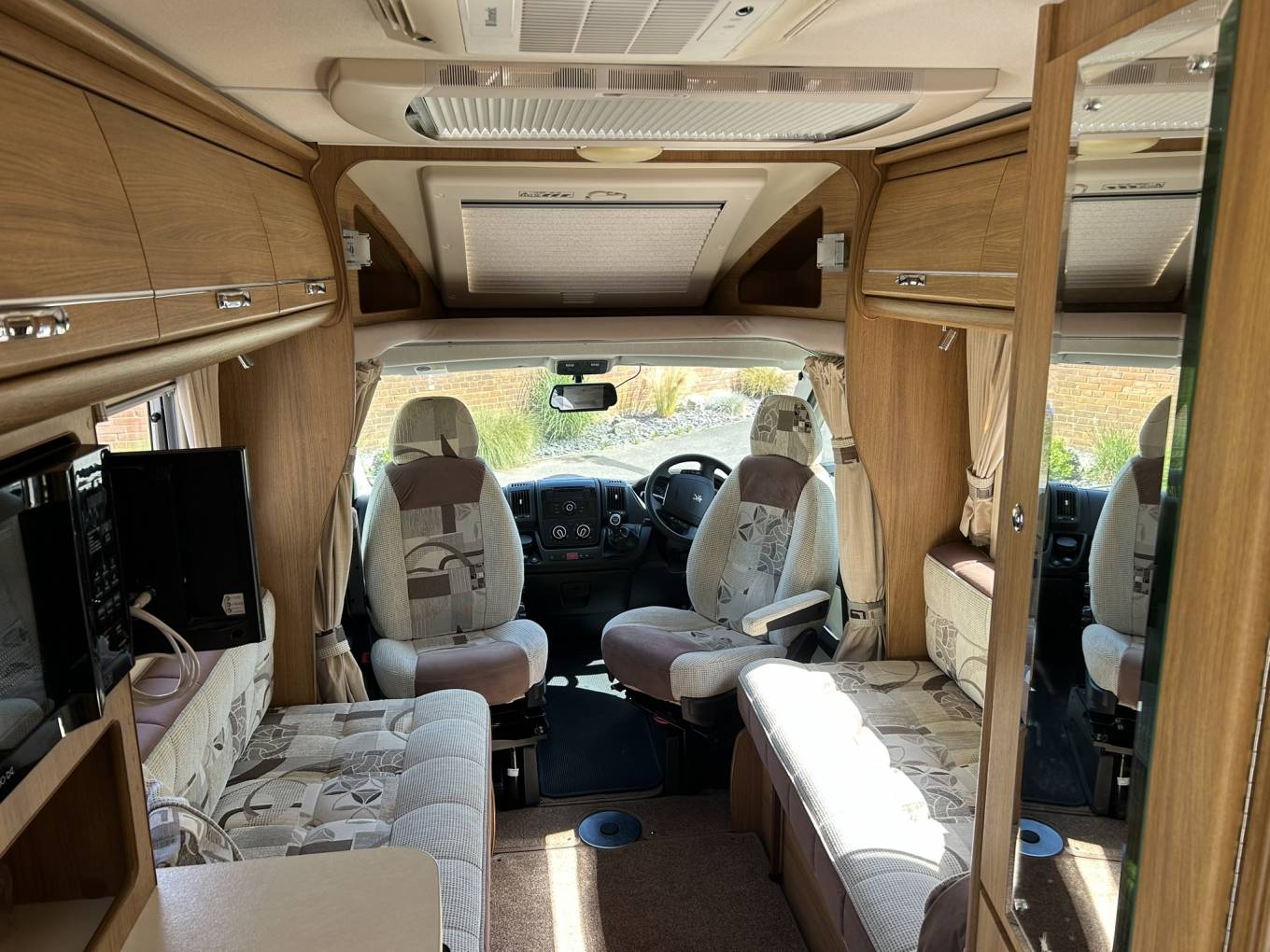 The cab has the 2 swivel seats, overhead roof vent, radio, cruise control, 6 speed gearbox and privacy curtains.