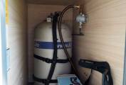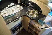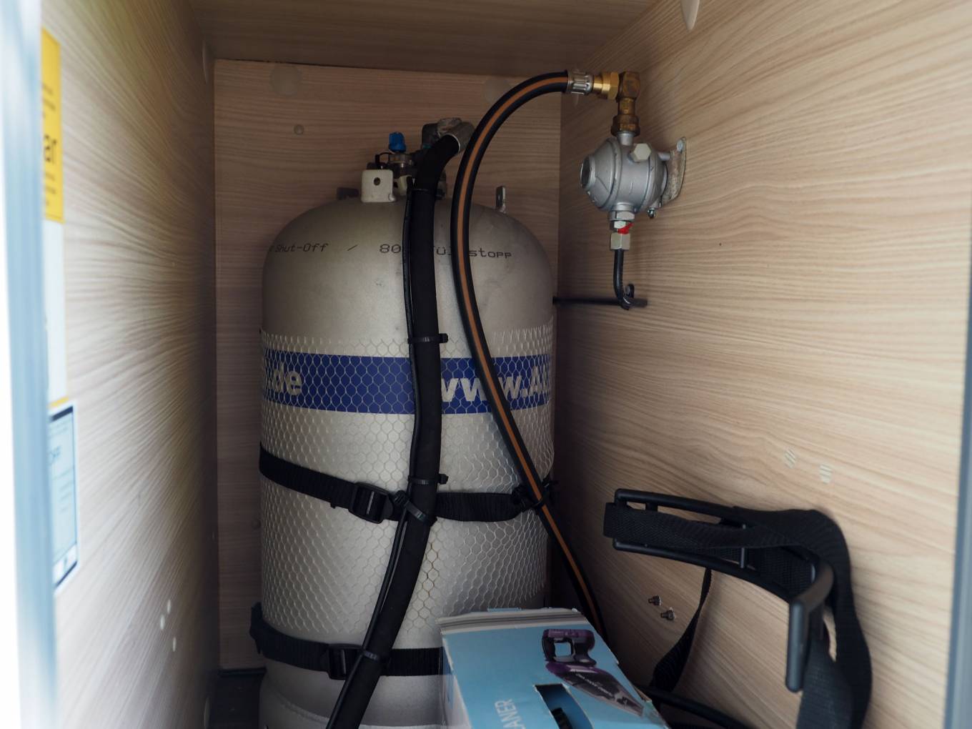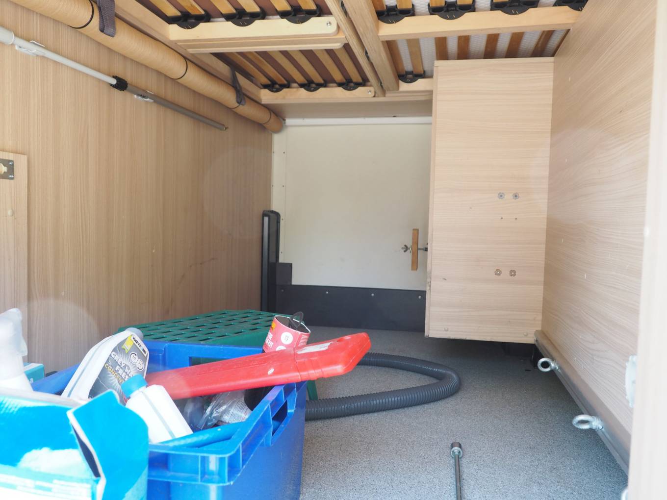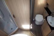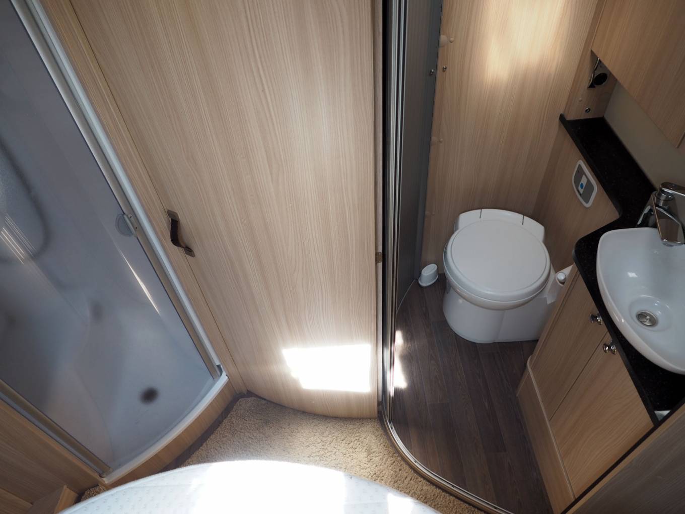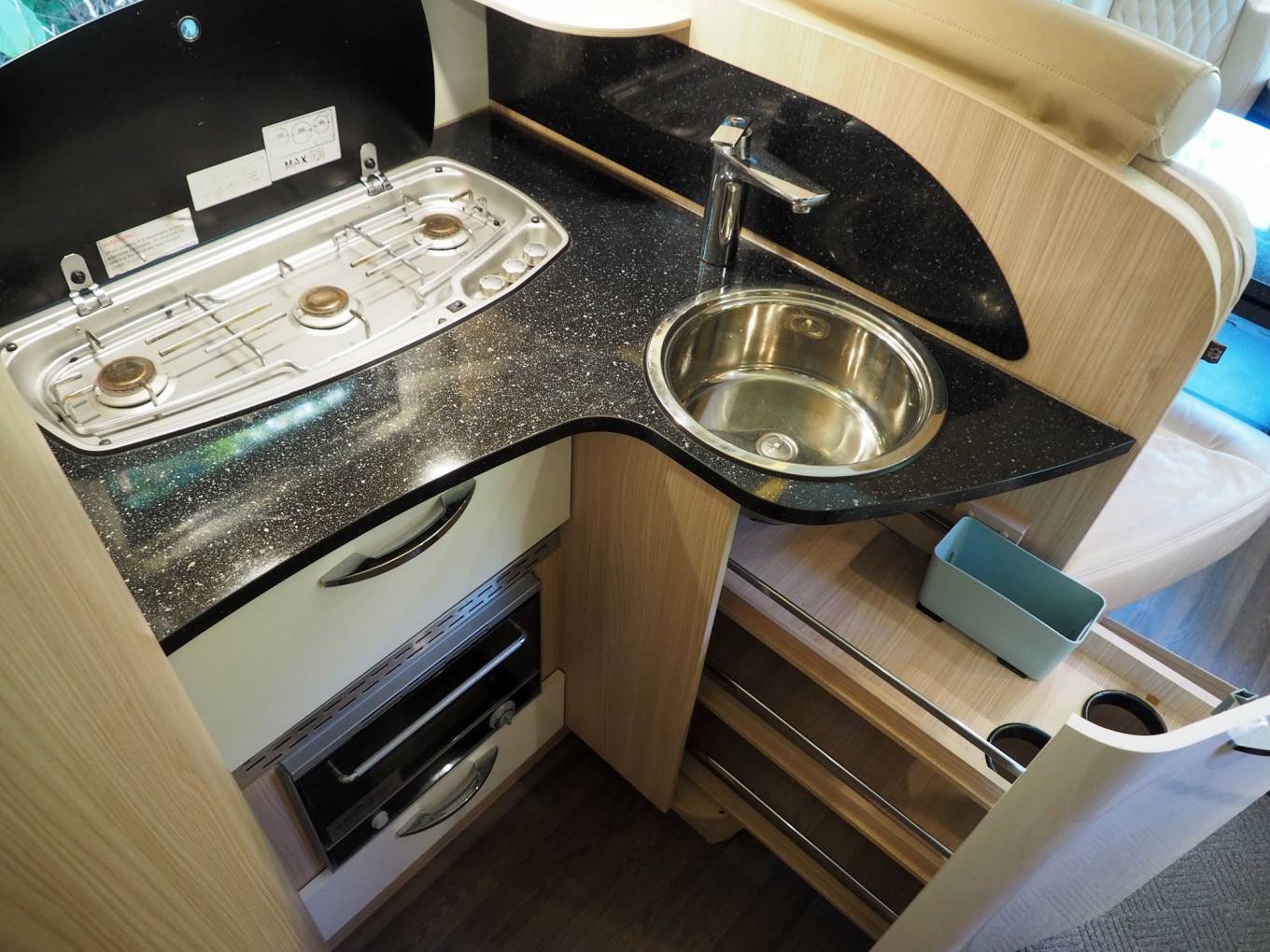 The rear bed lifts up to access storage underneath and the individual frames pop up for support when relaxing. On either side of the bed are separate wardrobes. The central washroom features a fully lined shower cubicle, toilet, vanity sink and storage with plenty of room to move around, meanwhile the kitchen has all the essential elements such as 3 burner hob, gas oven and grill, three way fridge freezer, aftermarket microwave and a range of storage. Full dual fuel heating and hot water are available via the Truma Combi system.