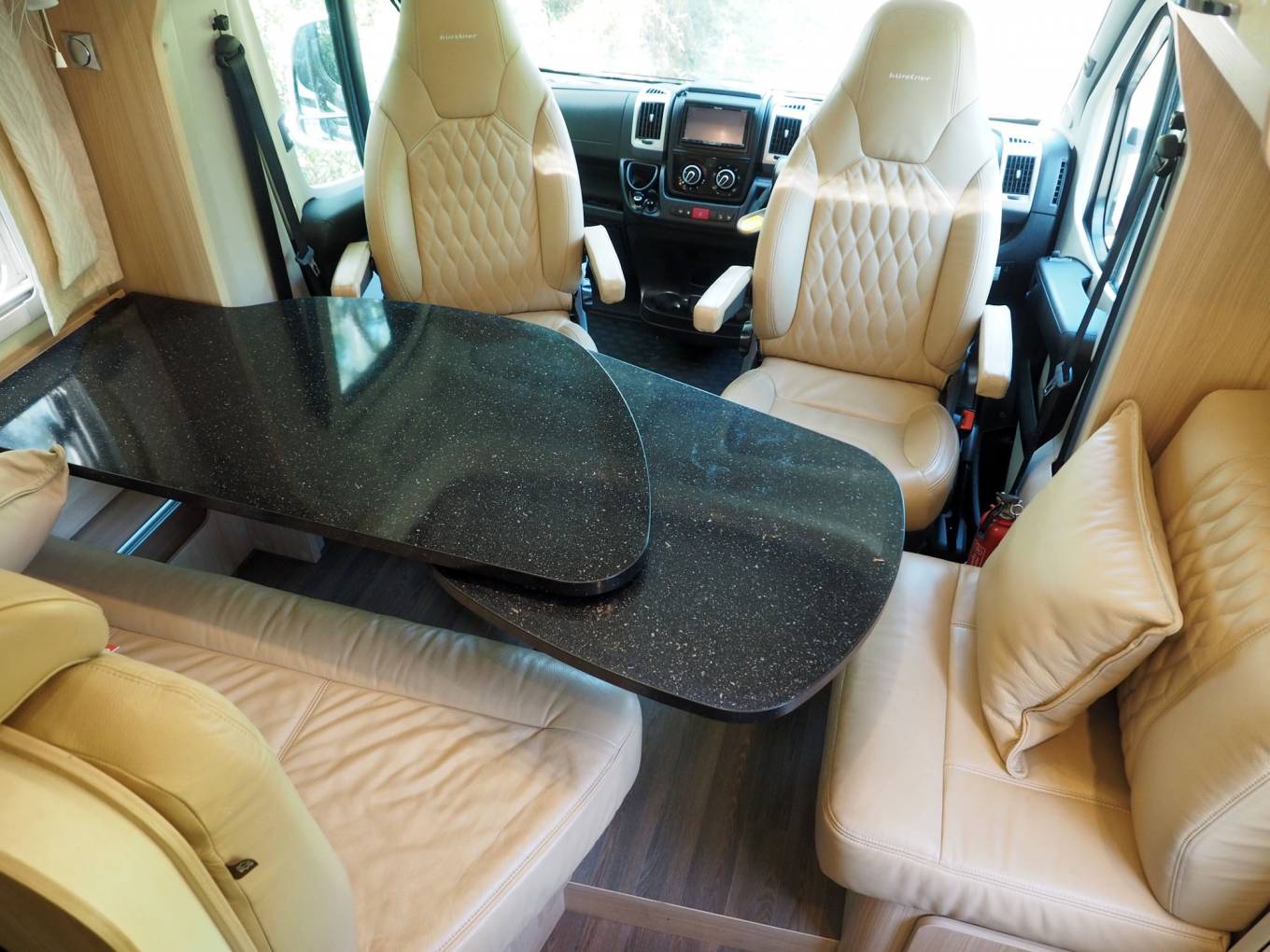 Powered by the Fiat 150bhp facelifted Ducato, driving the Burstner is easy using the Comfortmatic gearbox, giving 2 pedal driving in fully automatic or paddle shift modes. Cab air conditioning and cruise control are also present, along with reversing camera and a media head unit.