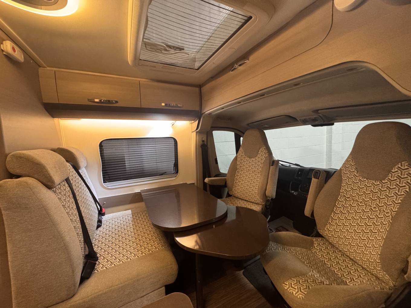 There are many extras including integrated blinds and fly screens throughout including rear door windows, Electric step and while in the cab there is air conditioning, cruise control and central locking. The vehicle is also fitted with solar charging and a towbar.