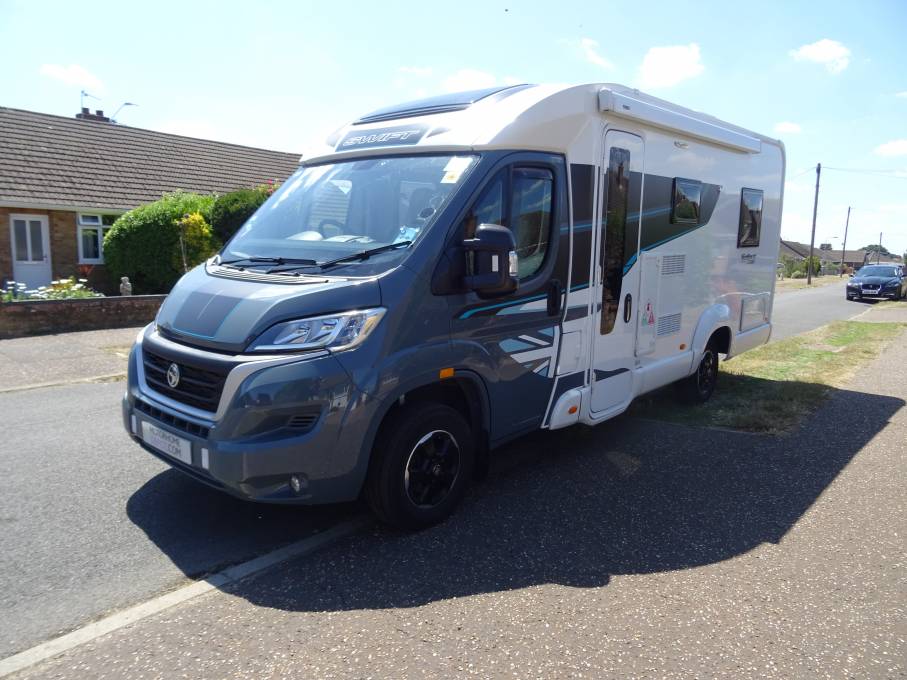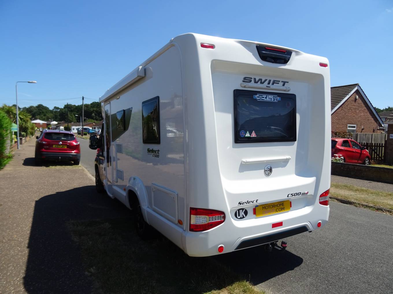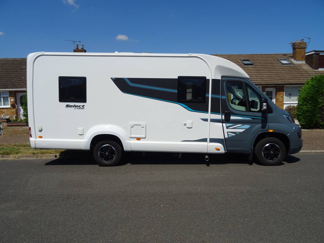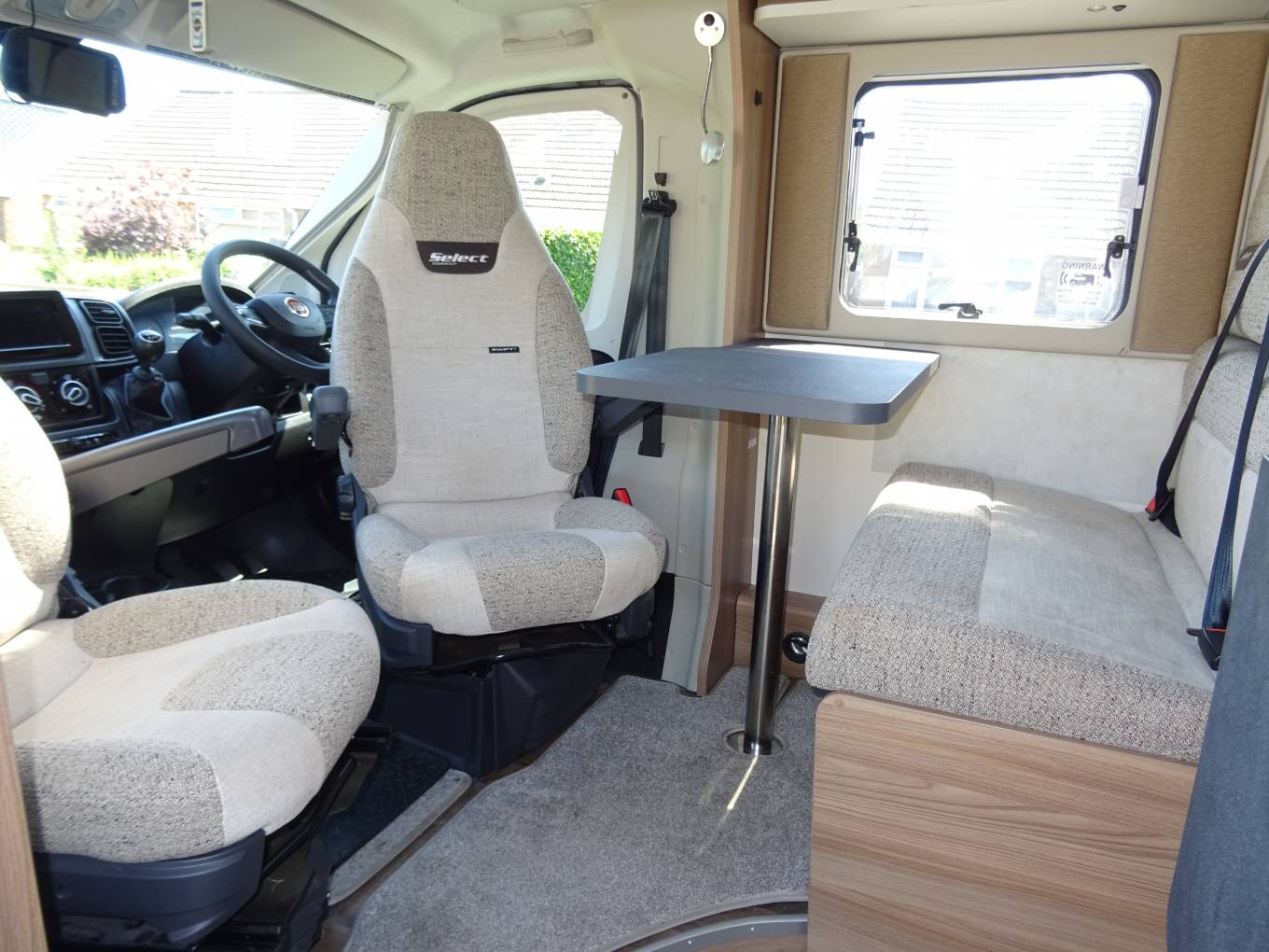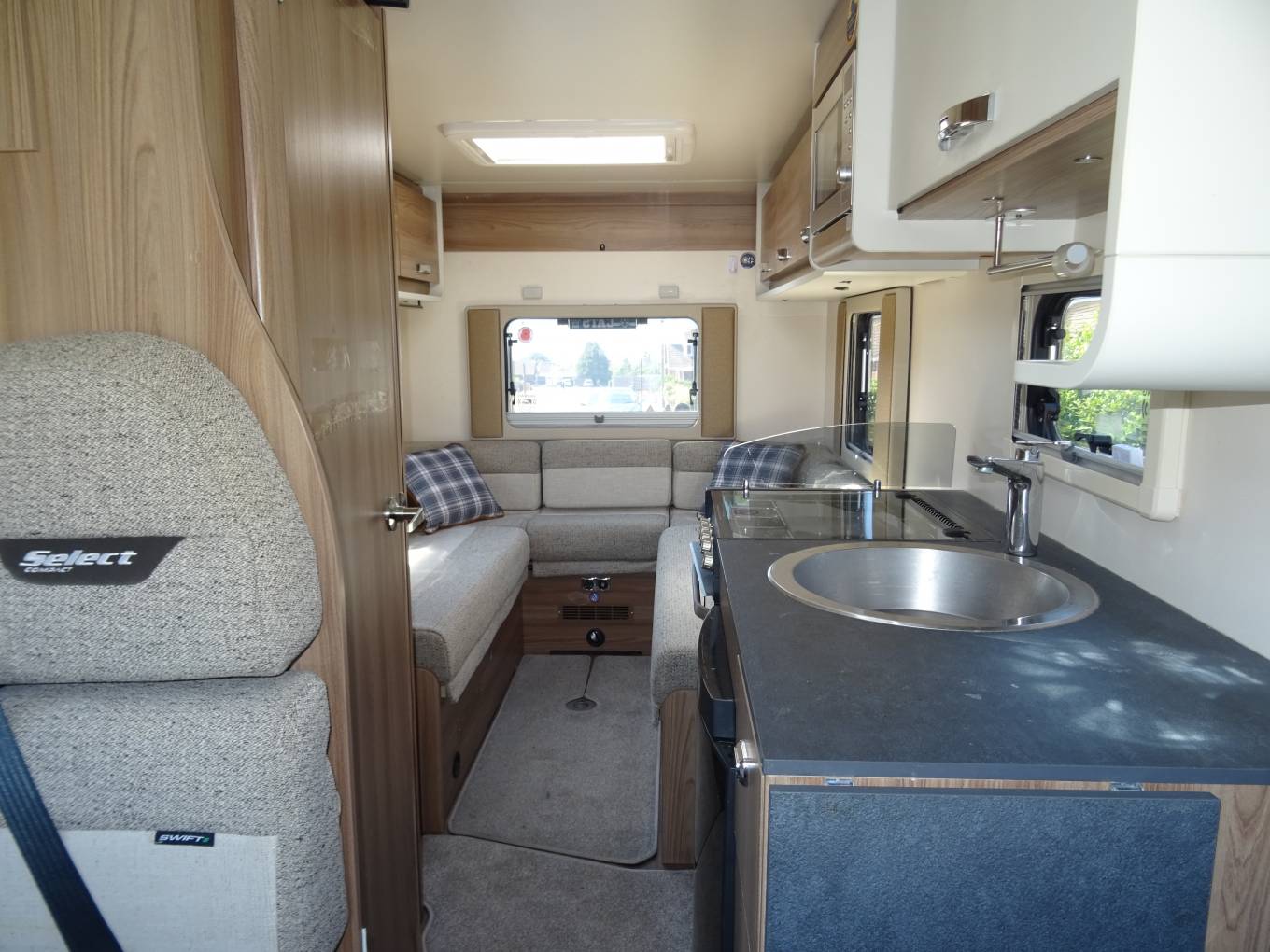 Swift Select Compact C500 2 Berth 2023 with 25,217 miles located in the The Norwich area. This compact and very practical motorhome has a great layout as you enter through the side door moving to the back you have the large U shaped lounge area with the sofa's finished in lovely light colours, this area makes into a large double bed with lots of high and low level storage space and is a nice area to relax or dine in. Moving round you have the central fully equipped kitchen consisting of oven, grill, 3 gas rings 1 electric ring, fridge freezer, microwave with good work top space. Opposite is a very spacious washroom with a good sized shower area mirror and storage area. To the front you have a dining area with 2 forward facing seats with 3 point seat belts. The front 2 captain seats both swivel round making this another place to relax or a nice dining space. This motorhome also has good storage space throughout. It is a good sized motorhome and easy to park and manoeuvre. habitation report completed 24/04/2025 last service 09/02/2024. Other great features, cab air con, solar panel, Tracker, spare wheel, gas low system, alloy wheels. There is a few stone chips on the front please ask for picture file.