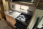 You will find the kitchen located to the front which comes with a three-ring gas burner and single electric ring, separate oven and grill, sink, large fridge freezer and microwave.