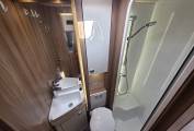 The washroom includes sink, cassette toilet, then shower, with full enclosure.