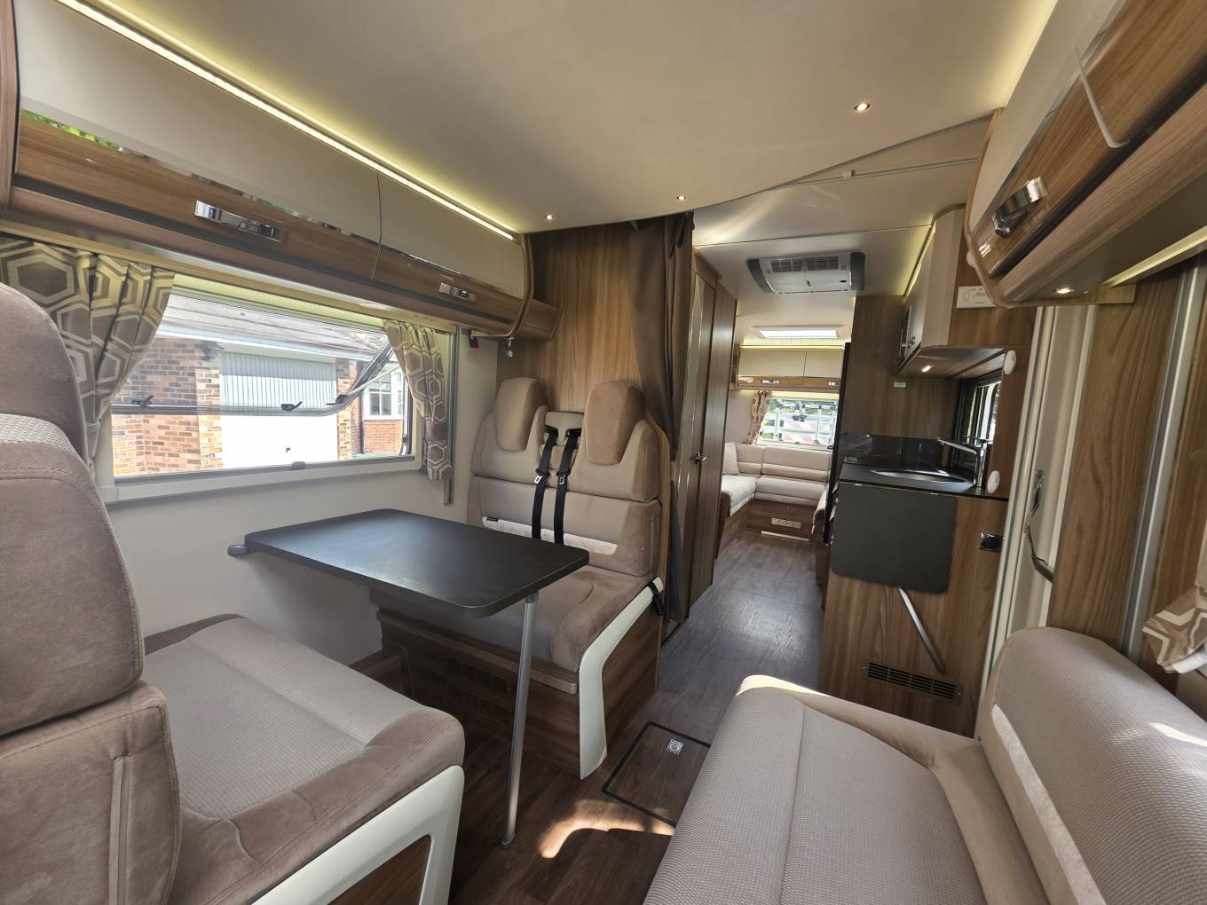 The dinette has 2 forward and 2 rear facing travelling seats, all with full seatbelts. The table can be used to create a further double bed