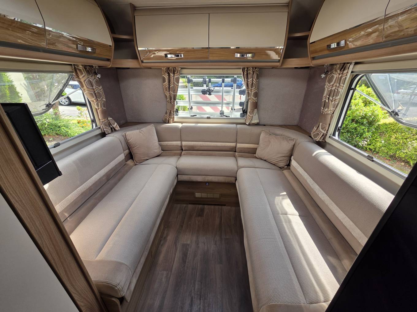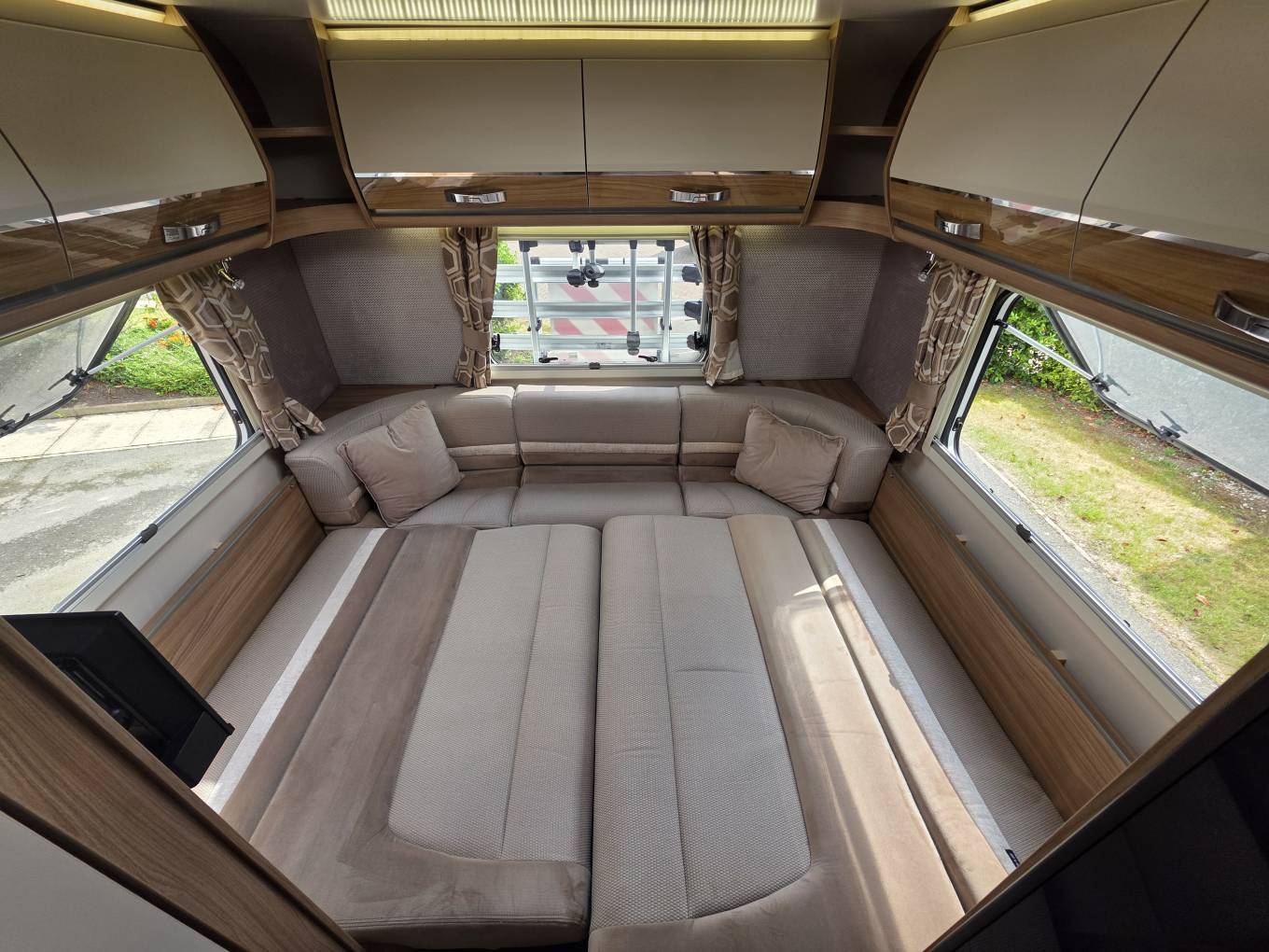 The rear U shape lounge has plenty of storage beneath and surrounding, then can be configured to create a large double bed, across the while width. There is a TV in this area and large wardrobe, with hanging rail.