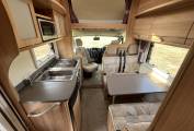 Inside, the 760 SE features a well-thought-out layout designed for six people, with two belted seats in the front and four in the rear. It includes a rear U-shaped lounge that converts into a double bed, a central dinette which also converts into a double bed , and an overcab double bed, all offering flexibility and comfort for sleeping arrangements.
