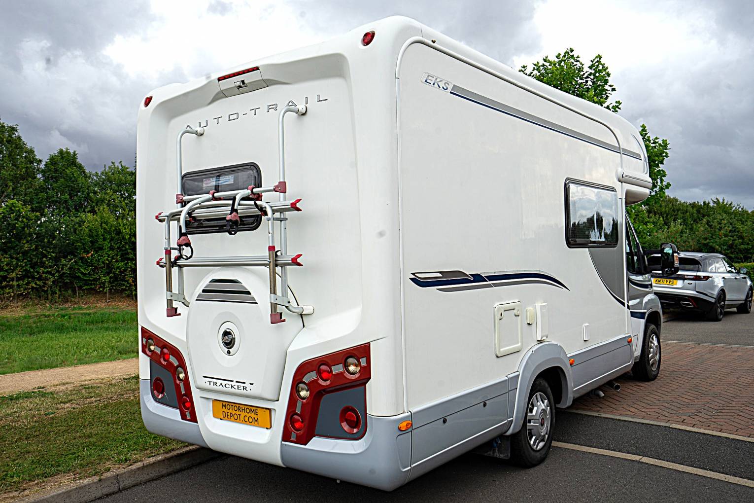 2012 Auto-Tracker EKS - 2 Berth Lo-Line Coach built Compact Luxury Motorhome with 2 long Sofa’s for maximum living space and End Kitchen. Based on the 2.3 litre 130 BHP Fiat Ducato Chassis. Features wind out awning, Solar panel, Reversing Camera, External BBQ & Shower Point, Bike Rack, Alarm, Remis Cab Blinds & Microwave.