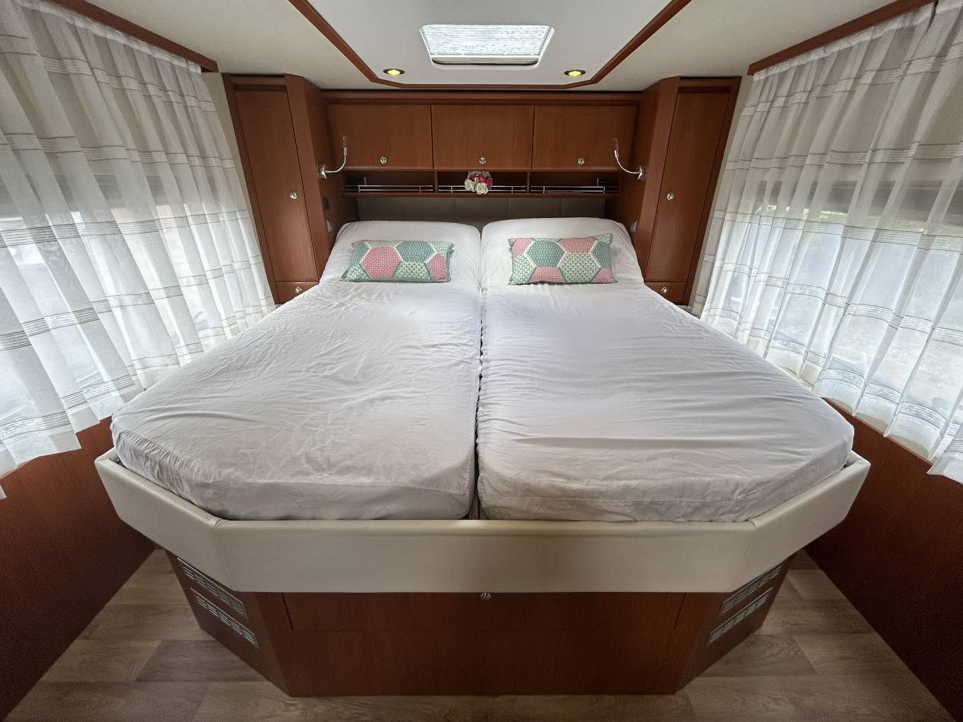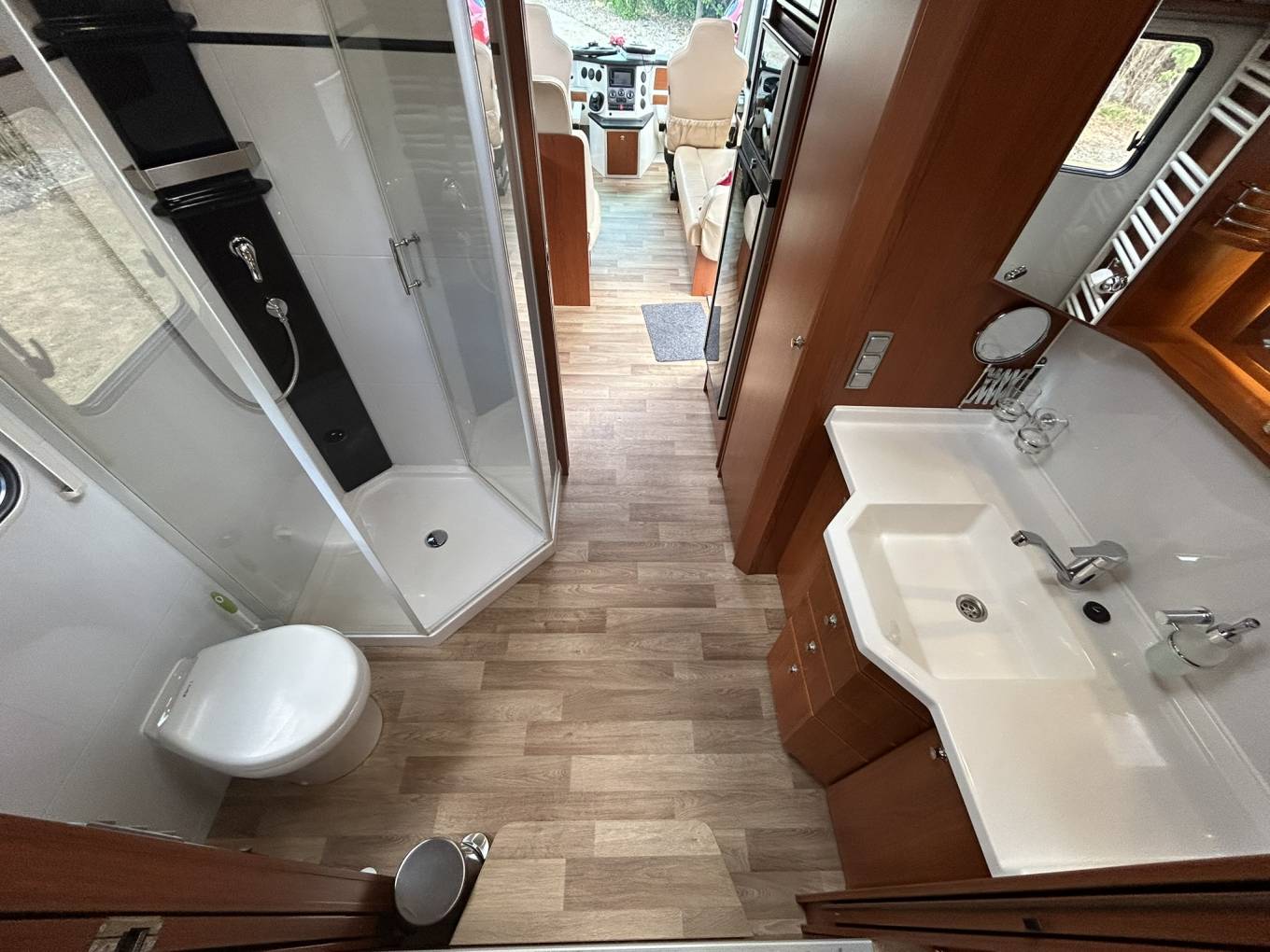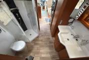 The standout feature is the enormous integrated car garage, offering unparalleled storage capacity for small cars, motorcycles, bicycles or extensive touring equipment. The self-levelling system ensures perfectly stable setup on any terrain within seconds, while the comprehensive Alde central heating with underfloor heating provides cosy warmth throughout. For warmer climates, the powerful dometic habitation air conditioning maintains a comfortable interior temperature.