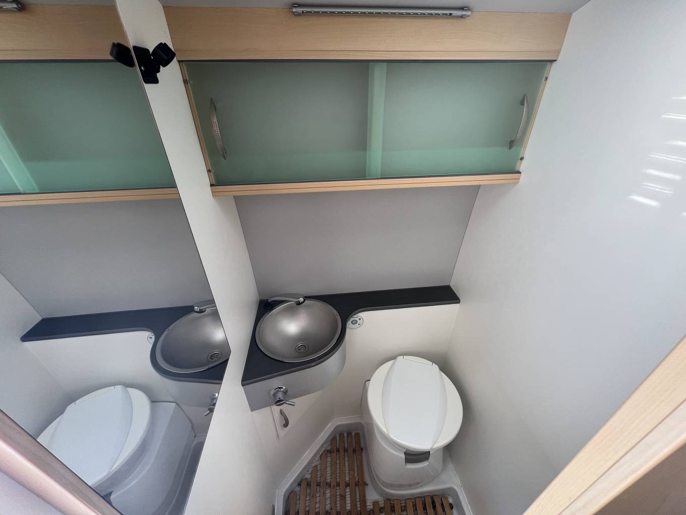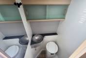 In the kitchen there is a fridge freezer, 3 gas burner hob, SMEV grill, pop up worktop and detachable flyscreen, which can be fitted the habitation door.