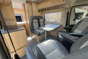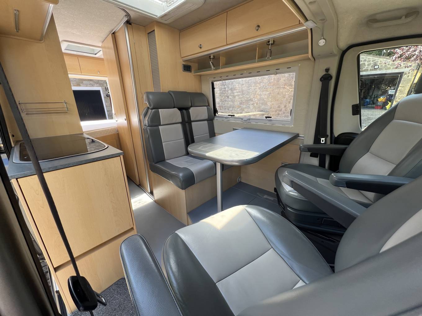 The half dinette has 2 travelling seats, with 2 seatbelts. The table has storage below and creates a nice area for entertaining, when combined with the 2 captains’ seats. An occasional bed can be created.