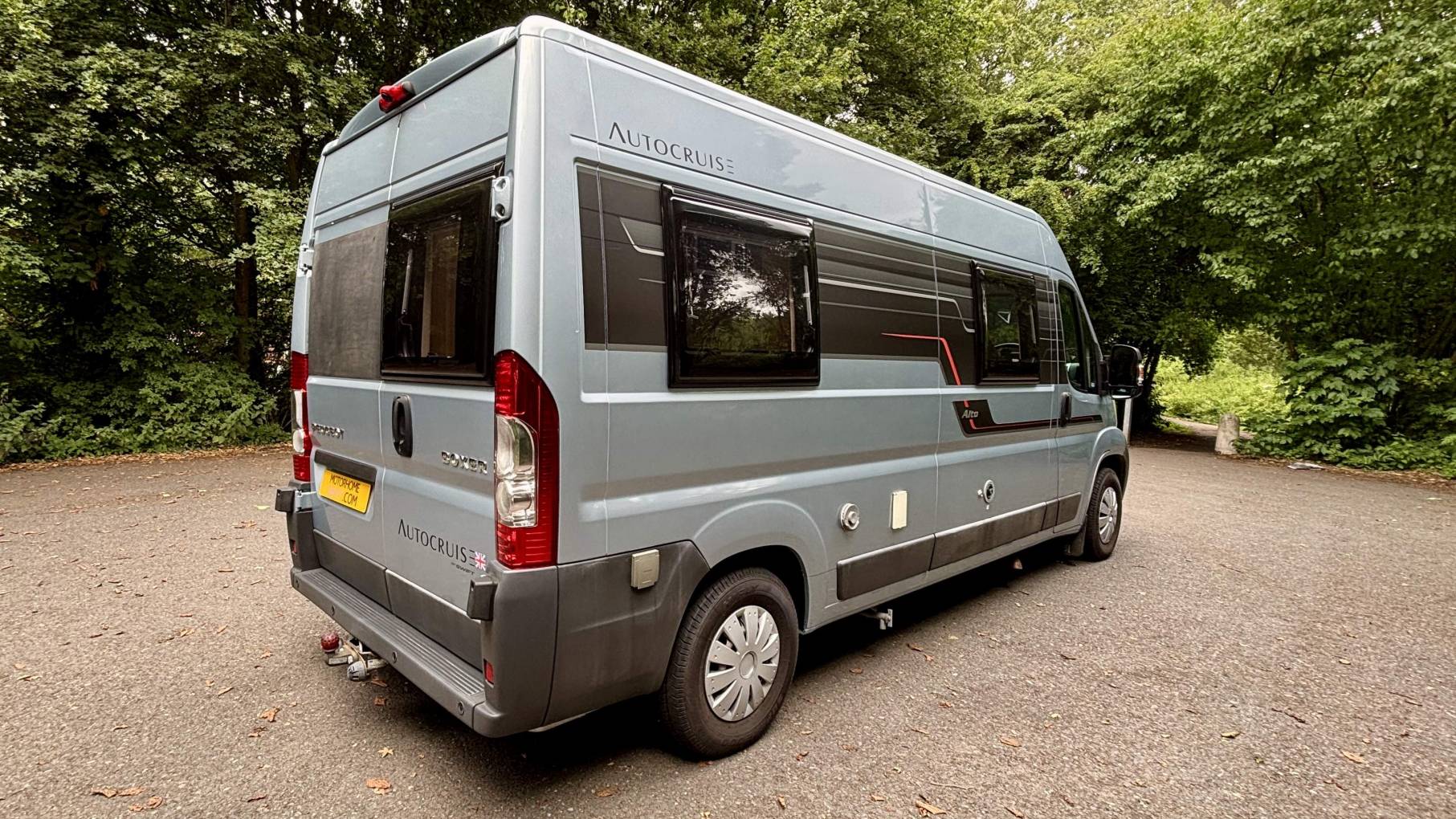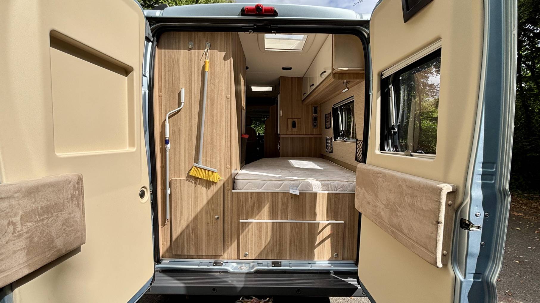 Onboard tech includes a 22" TV, Bluetooth audio, dashcam, reversing camera, and rear parking sensors, while a Safetag GPS tracker is fitted for added security. Outside, you’ll find a 100W solar panel, towbar, external BBQ point, and a wind-out awning for quick and easy shade wherever you pitch. It’s also supplied with levelling ramps, a power cable, and water hose – a complete touring setup.